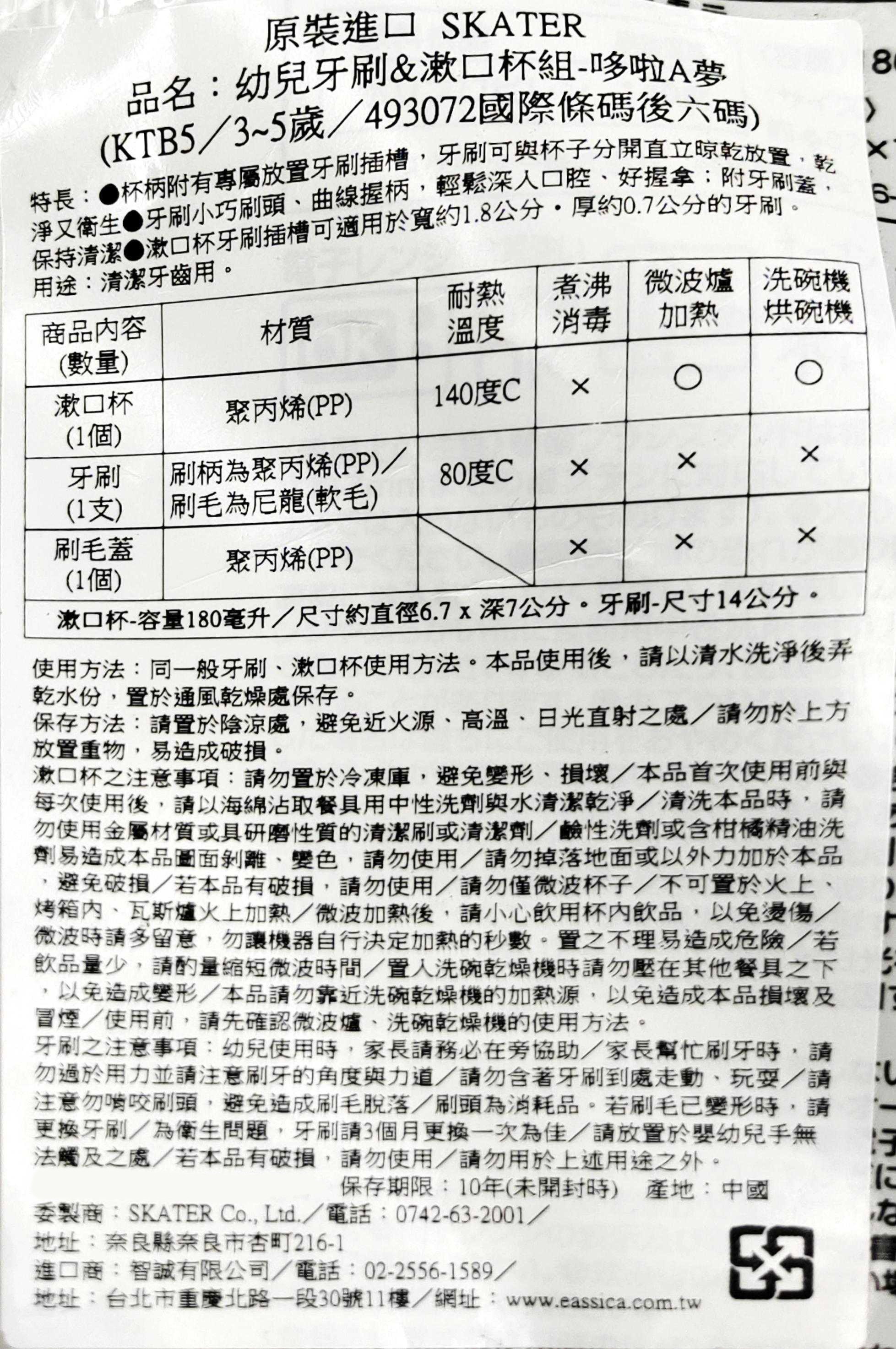 這款Skater哆啦A夢兒童牙刷漱口杯組,專為3至5歲的幼兒設計,讓孩子愛上刷牙!可愛的哆啦A夢圖案,讓刷牙時光充滿樂趣。牙刷刷毛柔軟,呵護幼兒稚嫩的牙齦,搭配漱口杯,養成良好的口腔衛生習慣。杯柄附有專屬放置牙刷的插槽,可將牙刷與杯子分開直立晾乾,乾淨又衛生,家長可以安心選購,讓孩子在歡樂中學習保護牙齒。