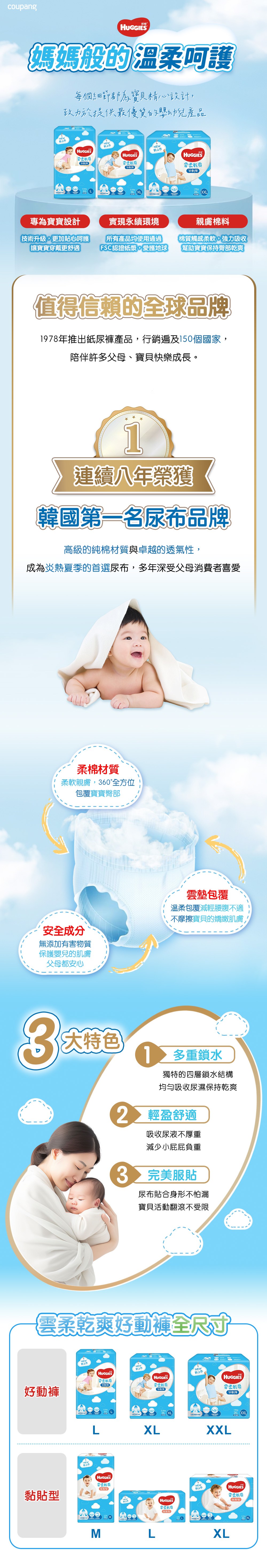 - 好奇雲柔乾爽好動褲,給寶寶帶來雲朵般的柔軟觸感,讓寶寶享受舒適體驗。