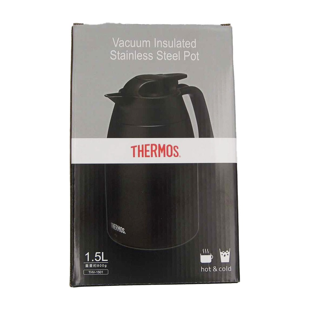 膳魔師 THV-1501-MTBK 不鏽鋼真空保溫壺,黑色,1.5L,是您保持飲品溫度的理想選擇。採用優質不鏽鋼材質,堅固耐用,真空保溫技術能有效鎖住溫度,無論是熱飲還是冷飲,都能長時間保持最佳口感。1.5L的大容量,滿足您一天的飲用需求,無論是居家使用還是辦公室,都非常方便。黑色外觀簡約時尚,易於清潔,僅需手洗即可。選擇膳魔師,享受隨時隨地的溫暖或清涼。