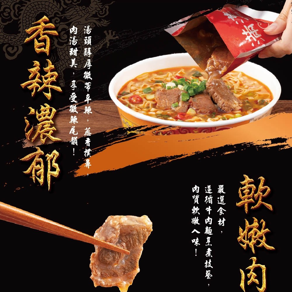 【序號覆蓋】滿漢大餐蔥燒牛肉麵,是您隨時隨地享受道地台灣牛肉麵風味的最佳選擇。這款泡麵採用獨特蔥燒工法,湯頭濃郁香醇,搭配Q彈有嚼勁的麵條,以及精選的牛肉塊,讓您彷彿置身於牛肉麵店。每箱包含6入碗裝泡麵,方便您與家人朋友一同分享,或是在辦公室、露營等場合隨時享用。滿漢大餐蔥燒牛肉麵,讓您輕鬆品嚐台灣經典美味,滿足您的味蕾。