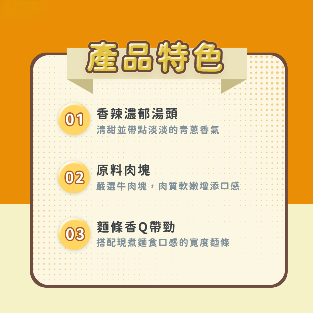 - 精選牛肉塊,口感軟嫩入味,搭配Q彈有勁的麵條,每一口都是豐富的味覺享受。