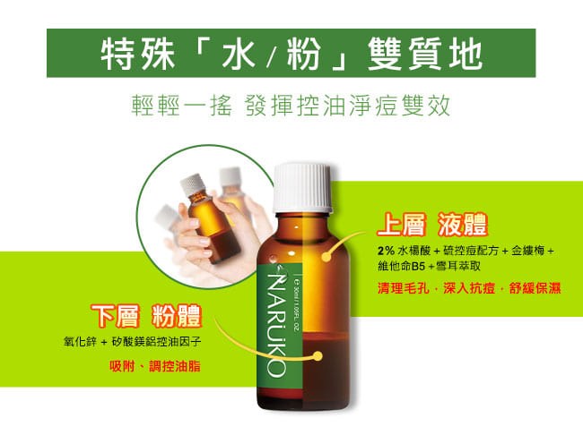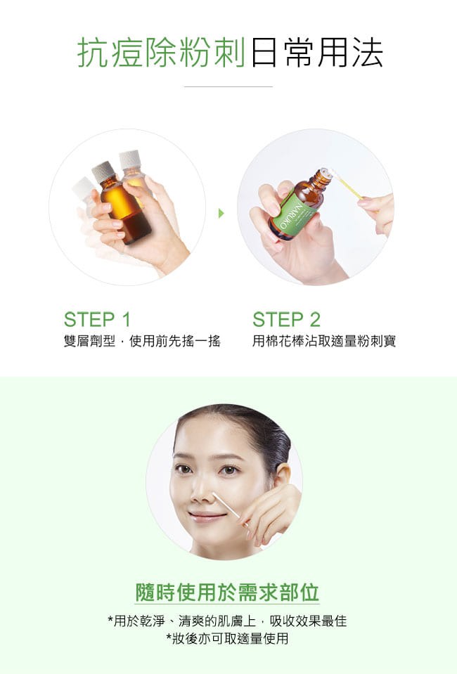 NARUKO 牛爾 茶樹抗痘粉刺寶是一款專為中偏油性肌膚設計的精華液,能有效調理肌膚油脂分泌。其獨特配方能深入毛孔,軟化老廢角質,使肌膚恢復光滑細緻。使用方法簡單,只需以棉花棒沾取適量,輕輕塗抹於痘痘或粉刺部位即可。持續使用,能明顯改善肌膚問題,讓您擁有健康清爽的肌膚。