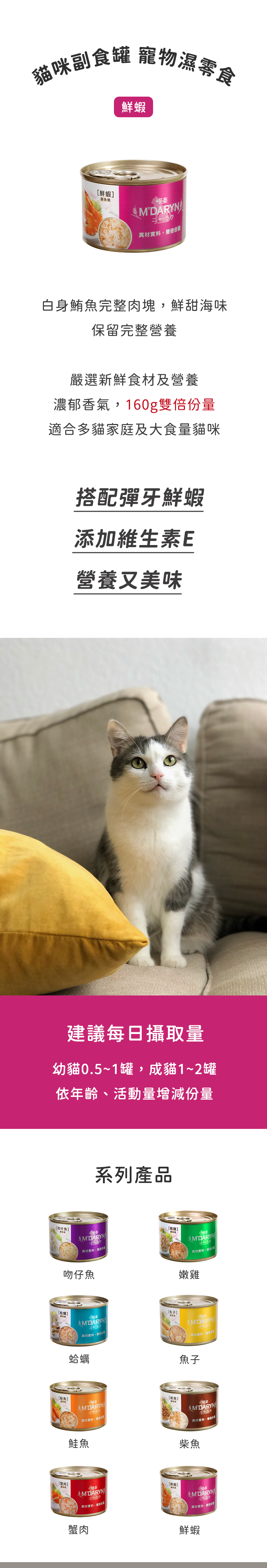 - 鮮蝦搭配鮪魚,雙重美味讓貓咪愛不釋手,享受豐富口感與營養,滿足牠們挑剔的味蕾。