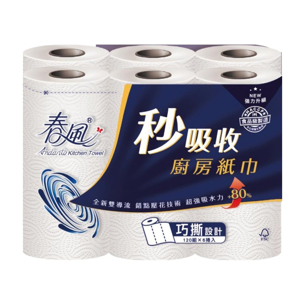 春風秒吸收廚房紙巾,是您廚房清潔的最佳幫手。這款紙巾採用巧撕設計,每組包含120張雙層紙巾,一串共有6捲,方便您隨時取用。全新雙導流錯點壓花技術,讓紙巾的吸水力提升80%,輕鬆應對廚房中的各種油水污漬。經HACCP食品級驗證,安心接觸生熟食,讓您在料理過程中更加安心。無論是擦拭檯面、吸除食物多餘水分,還是盛放油炸食品,春風廚房紙巾都能輕鬆搞定,是現代家庭廚房不可或缺的清潔用品。