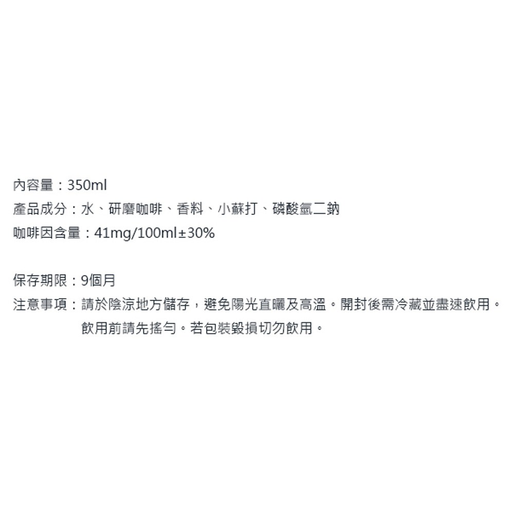 ・方便攜帶,隨時隨地享受高品質瓶裝咖啡,即開即飲,無糖配方,讓您隨時保持清醒。
