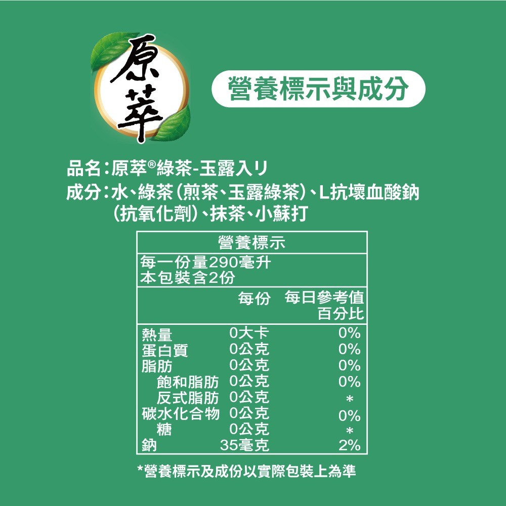 享受來自日本的道地風味,[箱裝] 原萃 綠茶玉露,每箱包含24瓶580ml的寶特瓶裝,讓您隨時隨地都能品嚐到清新甘甜的玉露綠茶。原萃嚴選100%日本進口茶葉,以獨特的雲霧工法萃取,保留茶葉最原始的精華,無糖無香料,讓您喝得安心又健康。玉露綠茶以其獨特的甘甜和低咖啡因的特性,成為追求健康和品味人士的首選。無論是辦公室、居家或戶外活動,原萃玉露綠茶都是您解渴的最佳夥伴,一次購買一箱,方便又划算。