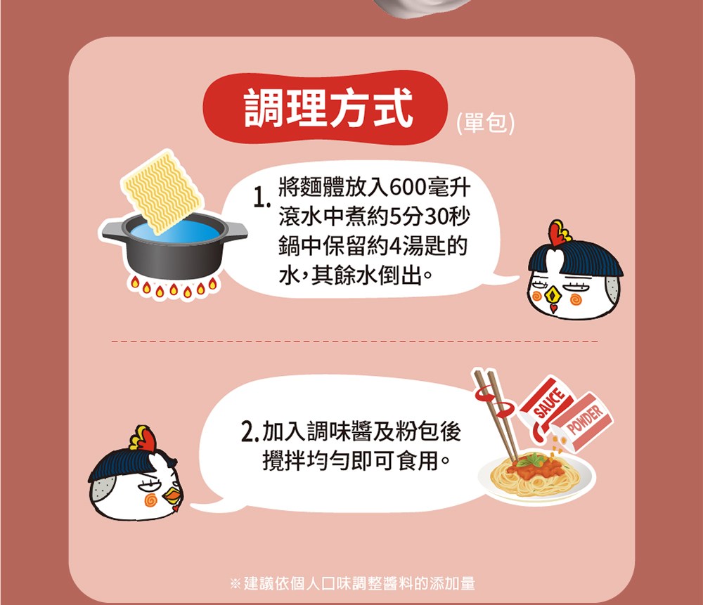 - 獨特粉紅醬風味,香濃滑順,搭配Q彈有勁的麵條,給您帶來豐富的味蕾享受。