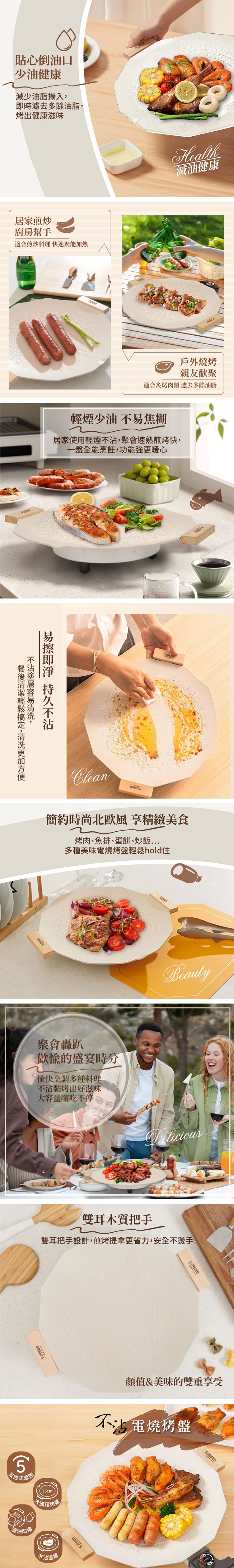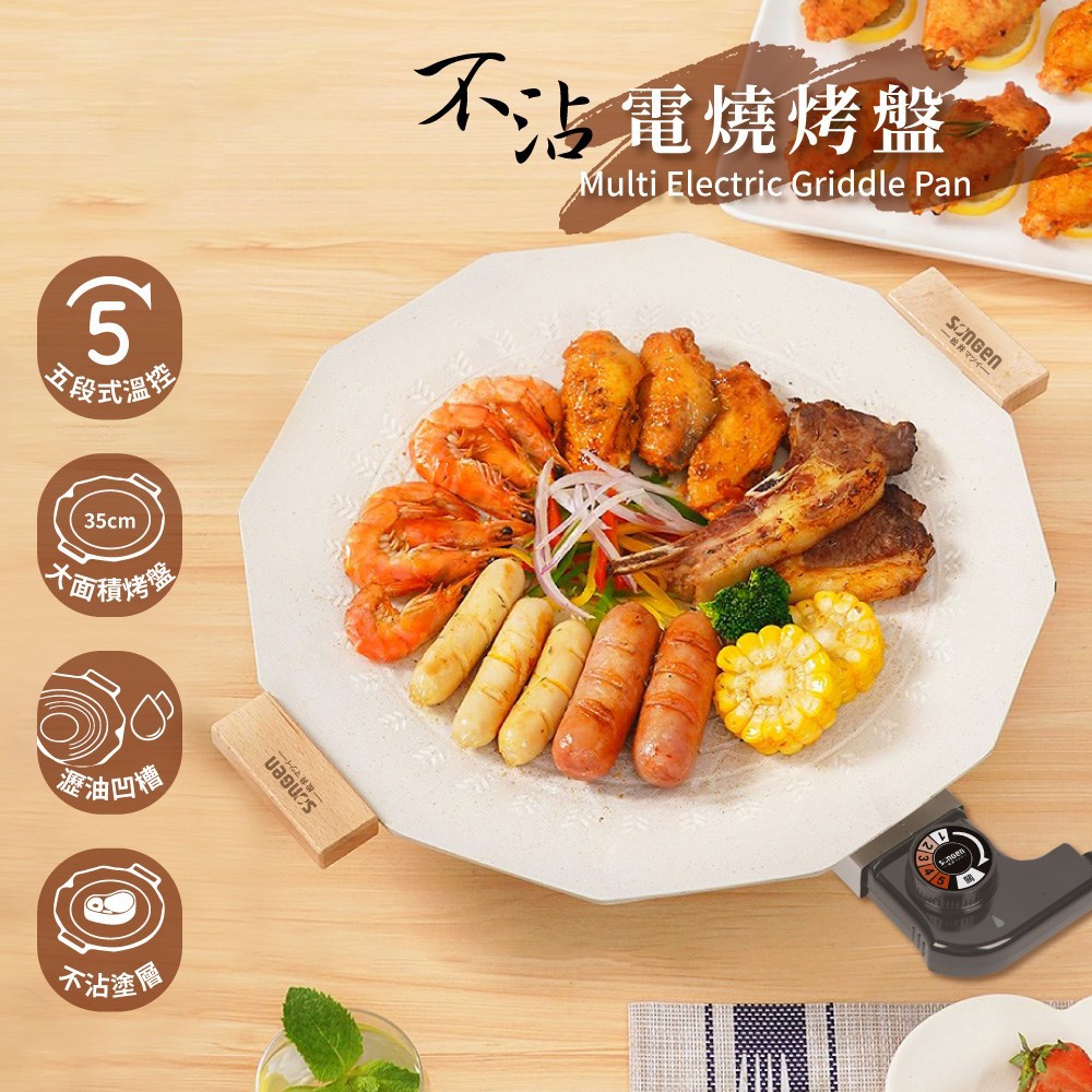 SONGEN 松井不沾電燒烤盤,讓您在家也能輕鬆享受燒烤樂趣。這款燒烤盤採用不沾塗層,讓您在烹飪過程中不易沾黏,清潔更加方便。其尺寸為410 x 355 x 75mm,重量僅1.6kg,輕巧易攜帶,適合各種場合使用。五段式溫度控制,讓您根據食材調整火力,輕鬆掌握烹飪火候。木質把手設計,隔熱防燙,使用更安全。無論是家庭聚餐還是戶外燒烤,SONGEN 松井不沾電燒烤盤都是您的理想選擇。