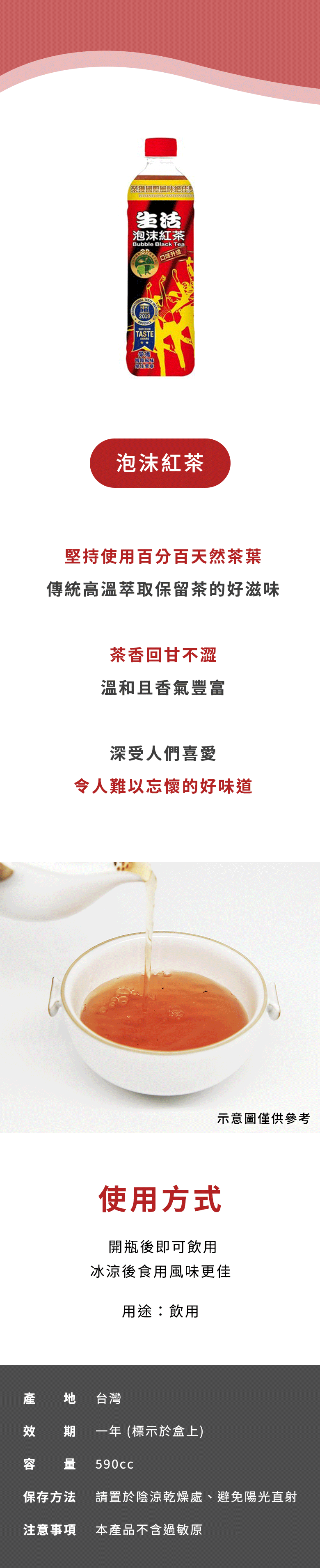 暢飲[箱裝] nulife 生活 泡沫紅茶,每箱包含24瓶590ml的清涼享受,以傳統高溫萃取工藝,保留了茶葉的原始風味,口感溫和且香氣豐富,深受大眾喜愛。無論是居家休閒還是辦公室小憩,隨時隨地都能享受這份清新滋味。採用塑膠瓶包裝,方便攜帶與儲存,讓您隨時隨地都能輕鬆暢飲。快來體驗這款榮獲國際風味評鑑的泡沫紅茶,感受它帶來的愉悅與滿足。