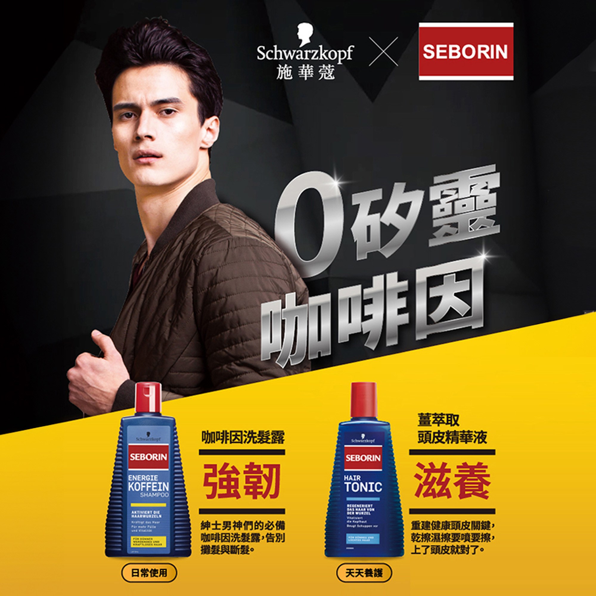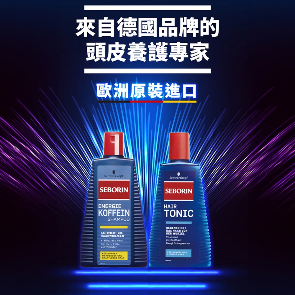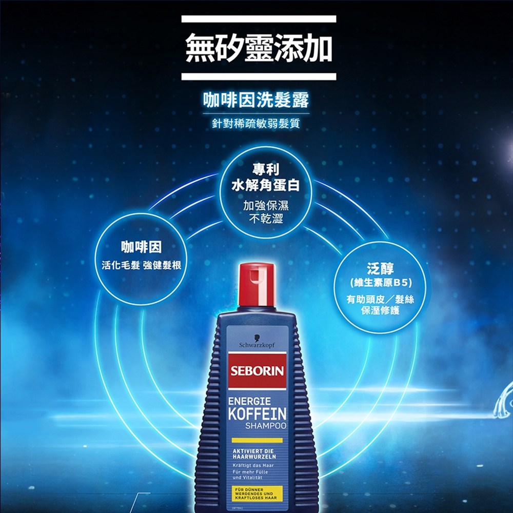 Schwarzkopf 施華蔻 seborin 咖啡因洗髮露,為您帶來強健豐盈的秀髮。這款洗髮露,蘊含咖啡因成分,為脆弱髮絲注入活力,讓頭髮更強韌,更有豐盈感。250ml 的容量,適合各種髮質使用,讓您每天都能享受清新潔淨的頭皮和充滿活力的秀髮。無矽靈配方,溫和呵護頭皮。選擇 Schwarzkopf 施華蔻 seborin 咖啡因洗髮露,從髮根開始,呵護您的秀髮,讓秀髮煥發健康光彩。
