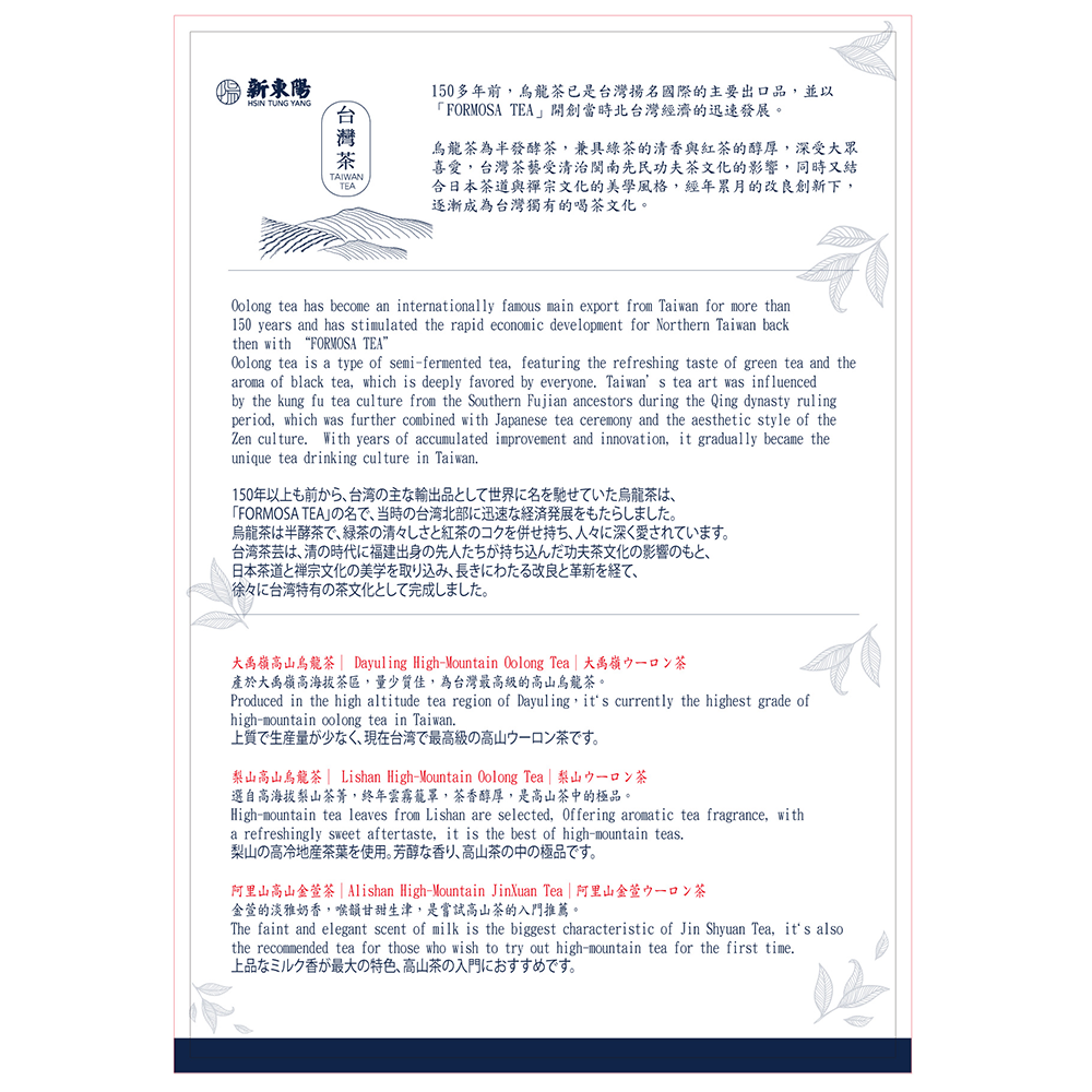 - - 禮盒包裝精美,送禮自用兩相宜,傳遞台灣茶文化的美好與心意。