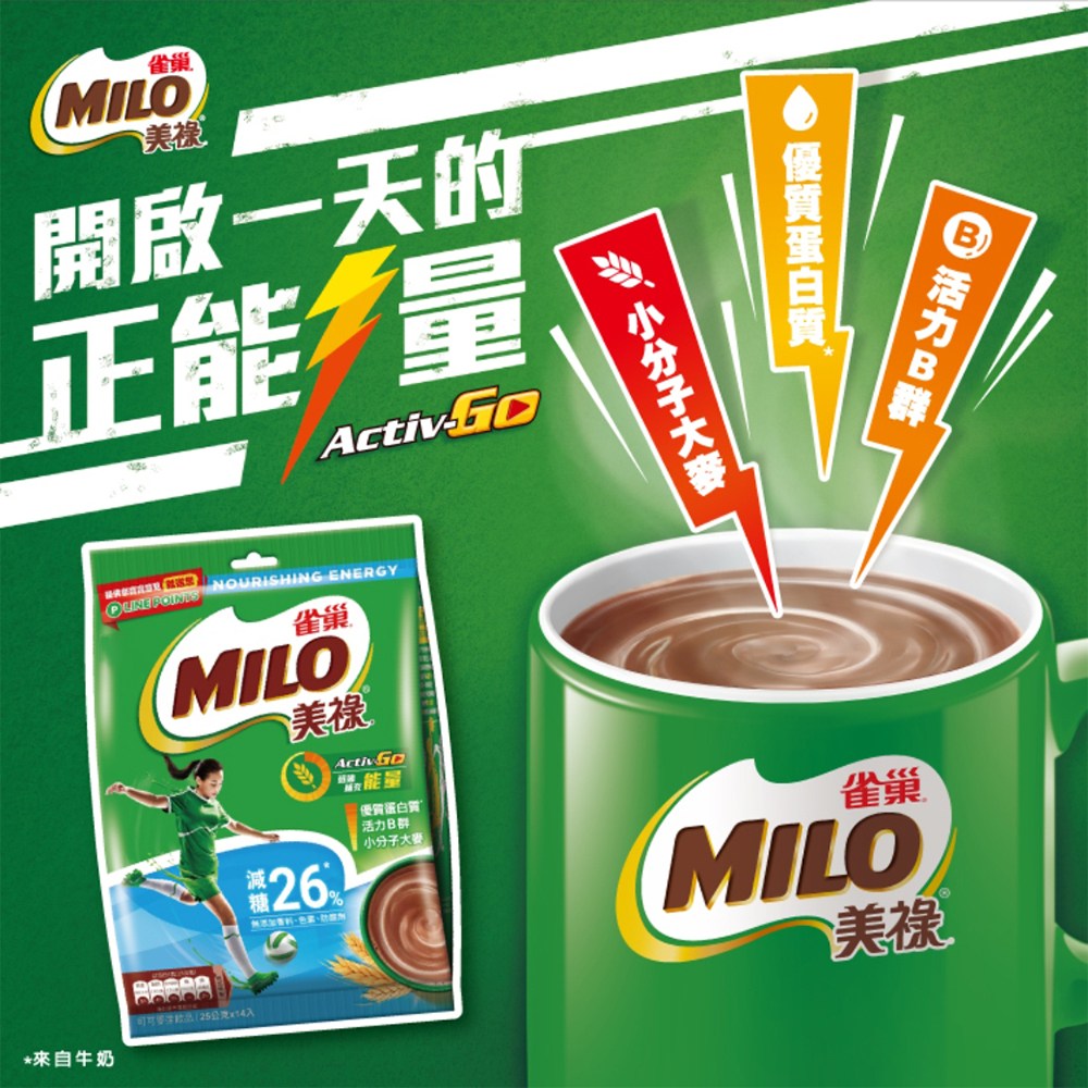 MILO 美祿減糖配方巧克力麥芽飲品,是您活力充沛的秘密武器!每包含有25克的美味粉末,一袋共有14包,方便您隨時隨地補充能量。這款減糖配方,讓您在享受經典巧克力麥芽風味的同時,也能減少糖分的攝取,更符合現代健康飲食的需求。MILO 美祿富含優質蛋白質和維生素B群,有助於支持您的日常活動和運動表現。無論是早餐、下午茶,或是運動後,MILO 美祿都是您快速補充能量的最佳選擇,讓您隨時保持最佳狀態!