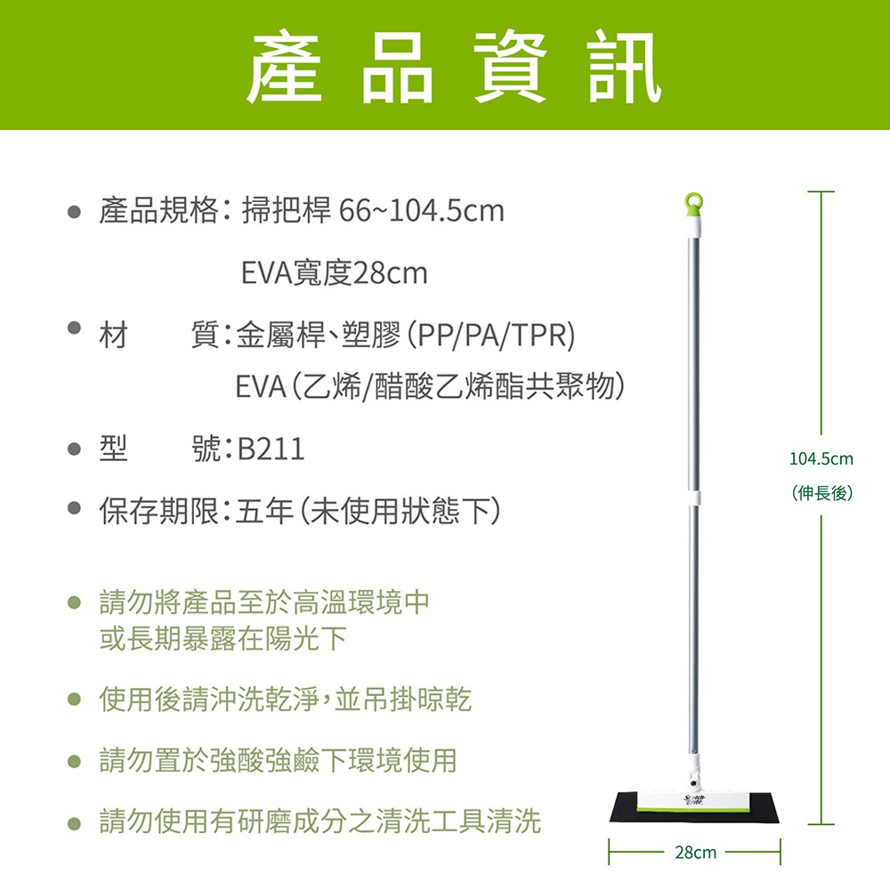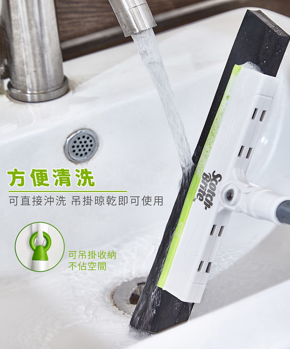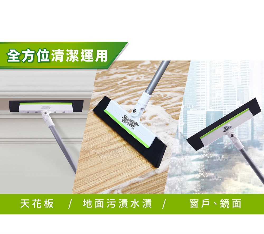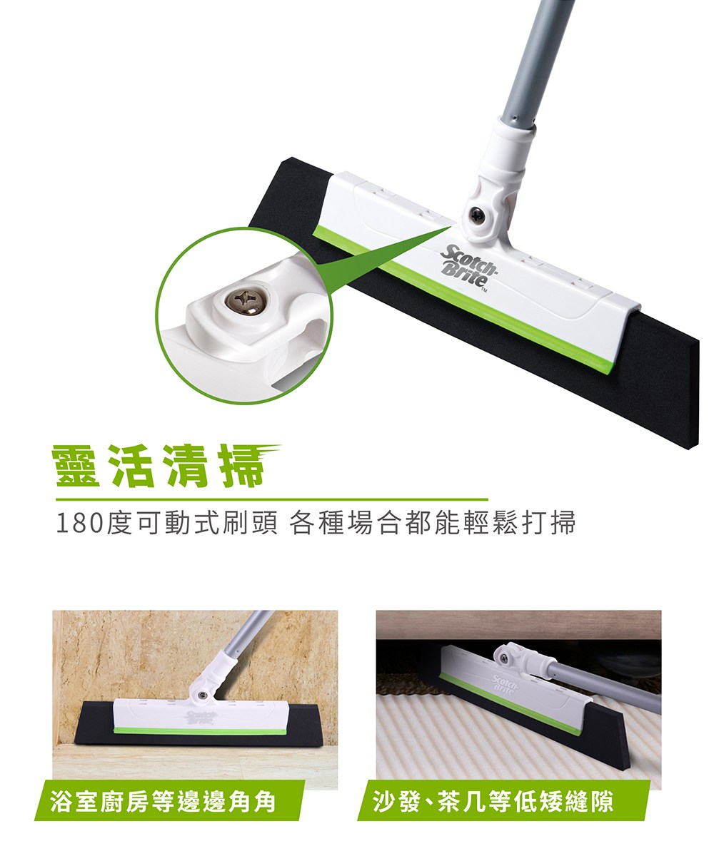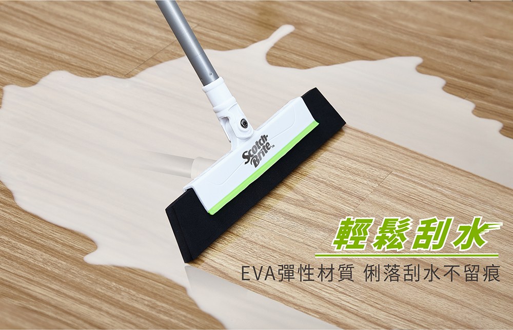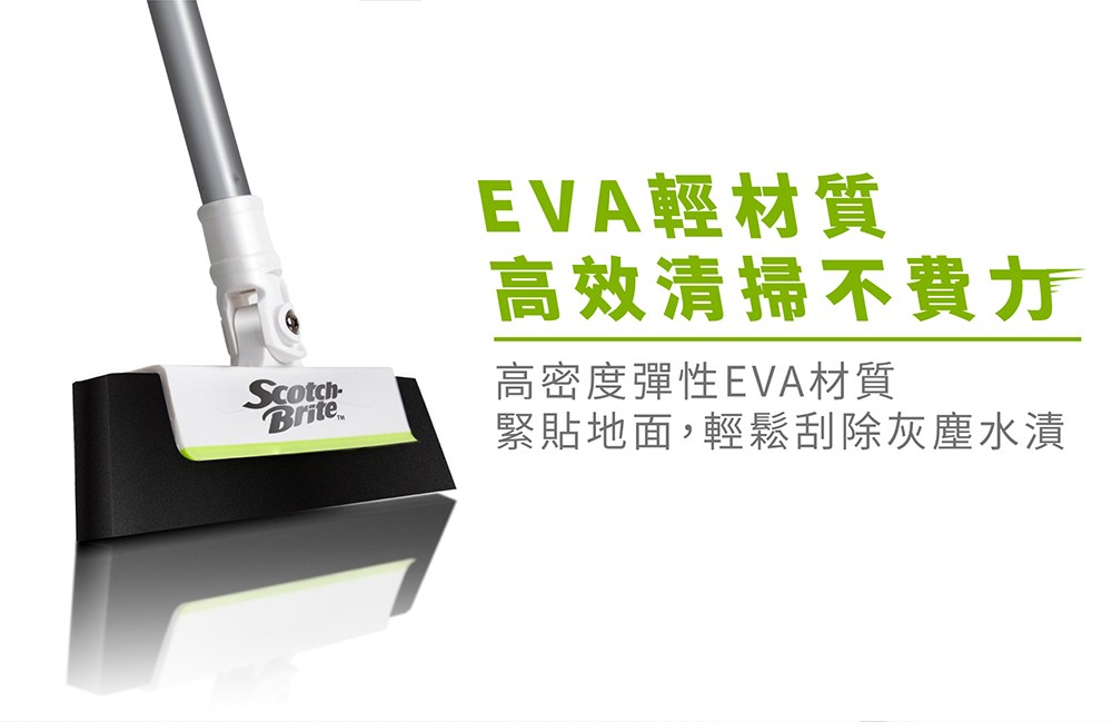 3M Scotch-Brite 百利 EVA輕巧無痕掃把 伸縮款 掃把桿伸長後104.5cm EVA寬度28cm, 綠色, 1支