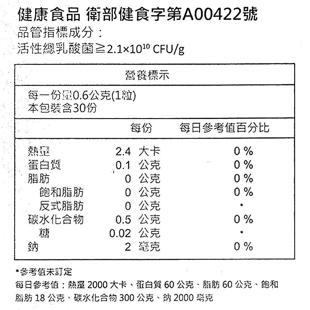 - 乳酸菌保證菌數: 未指定