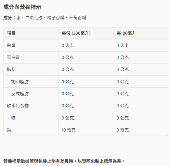 - 零卡香氛氣泡飲,無糖配方,享受氣泡的同時,不用擔心熱量,隨時享受無負擔的清新。