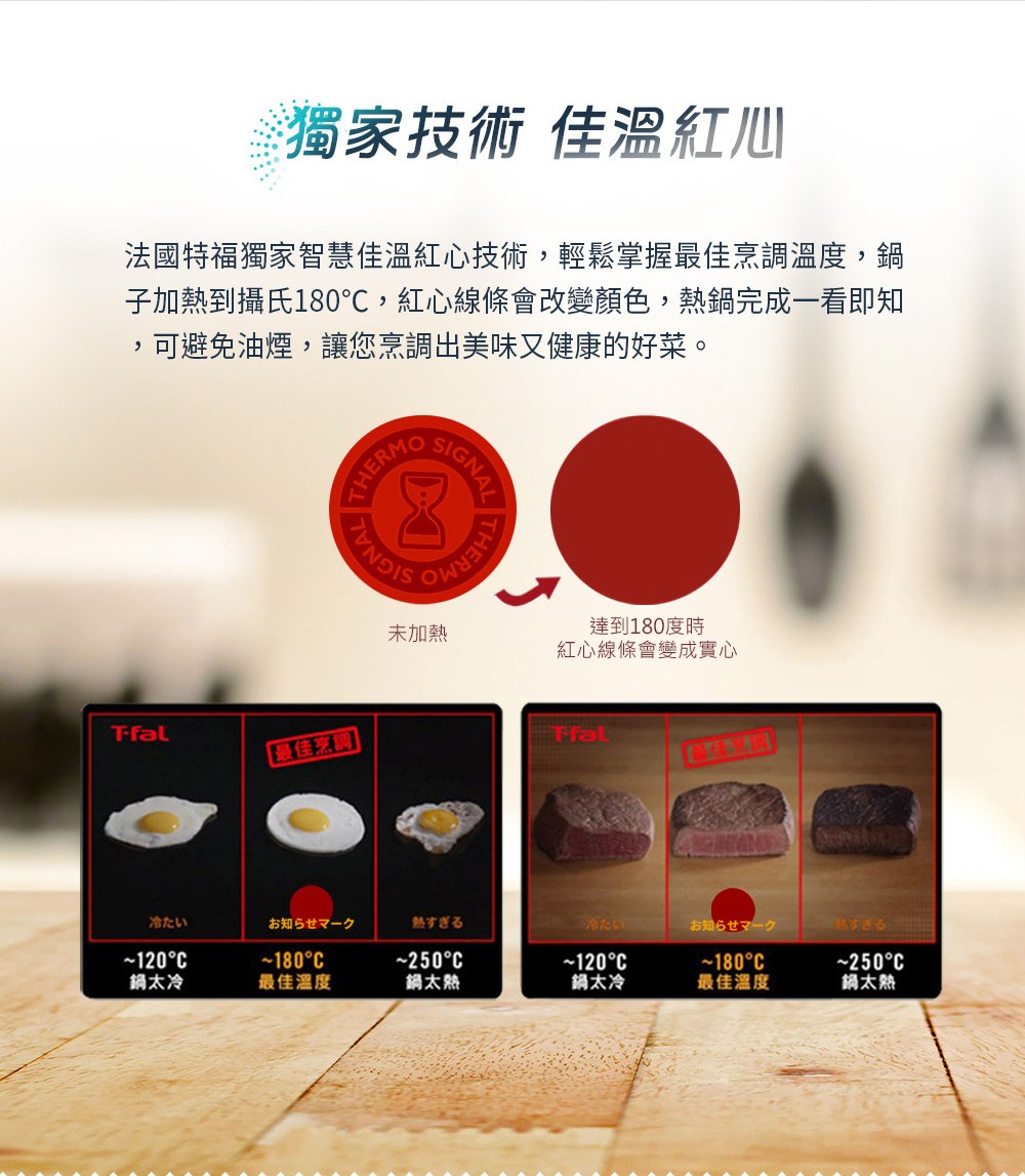 - 鍋底佳溫紅心技術,提醒您最佳烹調溫度,輕鬆掌握火候,烹飪新手也能變大廚。