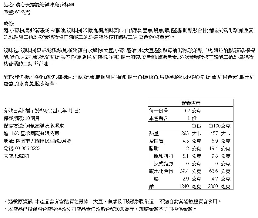 - 農心天婦羅海鮮味烏龍杯麵,湯頭濃郁,口感豐富,帶來滿滿的幸福感。