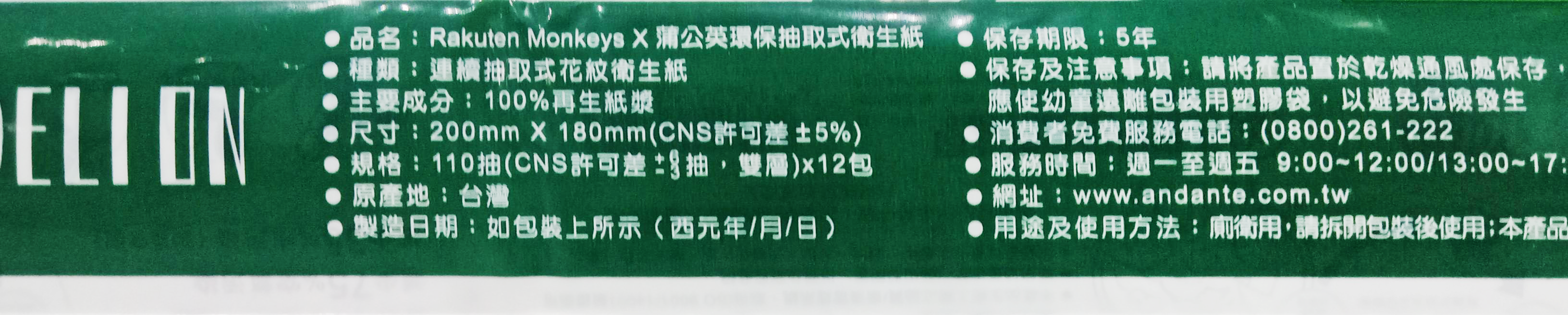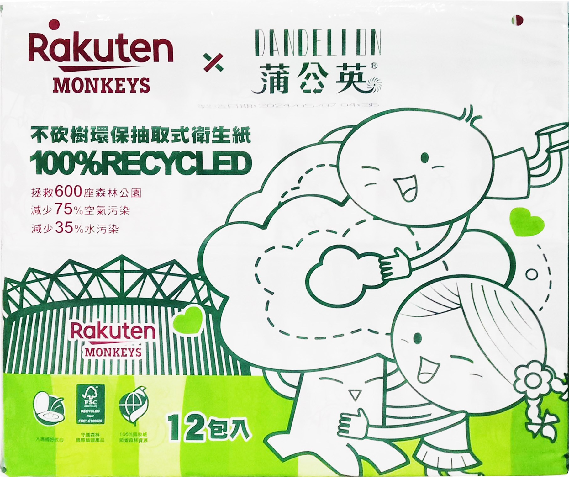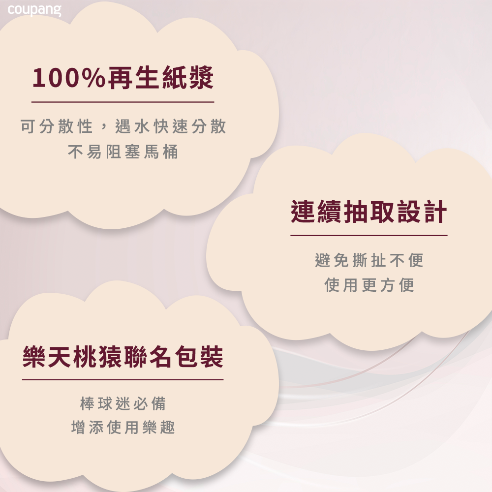 - 蒲公英與樂天桃猿聯名設計,可愛猩猩圖案,讓抽取衛生紙也充滿樂趣,為生活增添更多色彩。