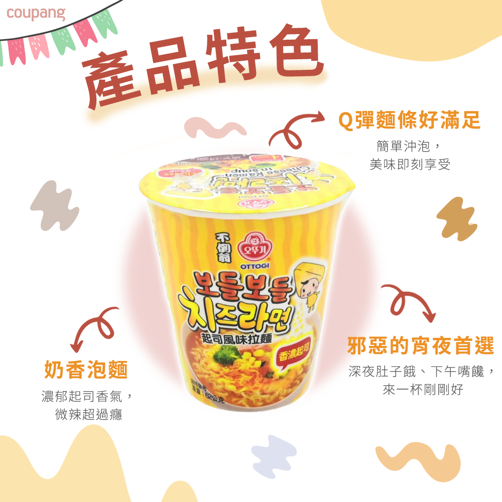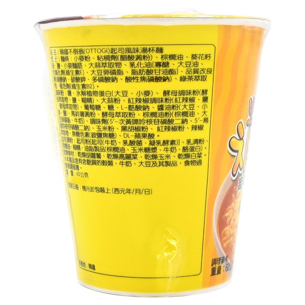 OTTOGI 不倒翁起司風味湯杯麵,濃郁的起司香氣搭配Q彈有嚼勁的麵條,只需熱水沖泡四分鐘,即可享受美味。這款小杯麵份量適中,適合當作宵夜或點心,隨時隨地滿足您的味蕾。非素食,含有麩質,請對相關成分過敏者留意。韓國製造,品質保證,讓您安心享用道地的韓式風味。