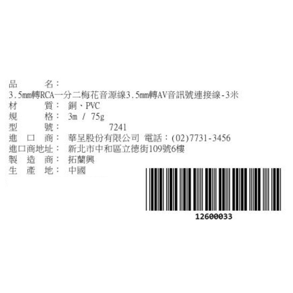 3.5mm轉RCA一分二梅花音源線3.5mm轉AV音訊號連接線 3m, 7241, 1條
