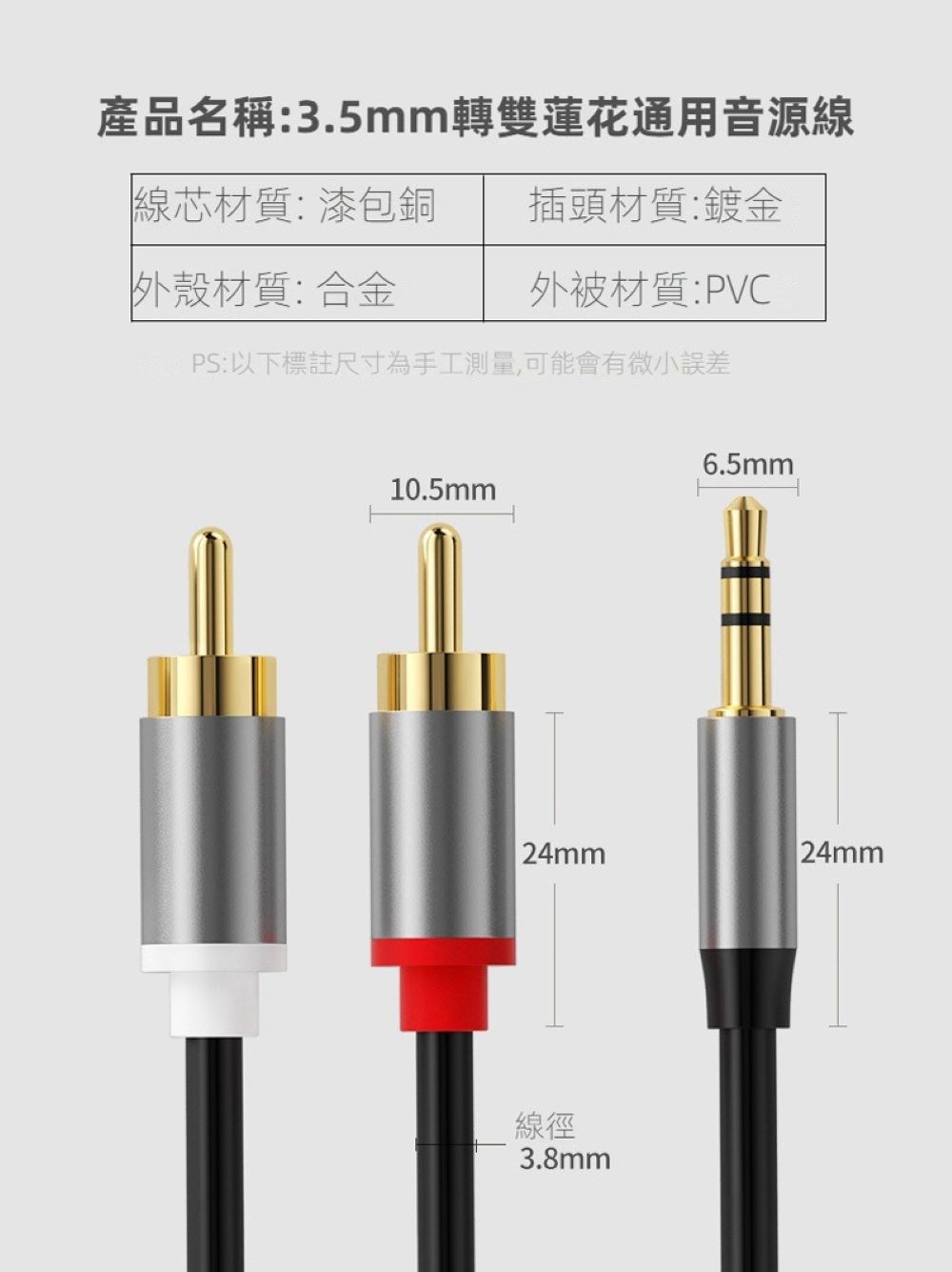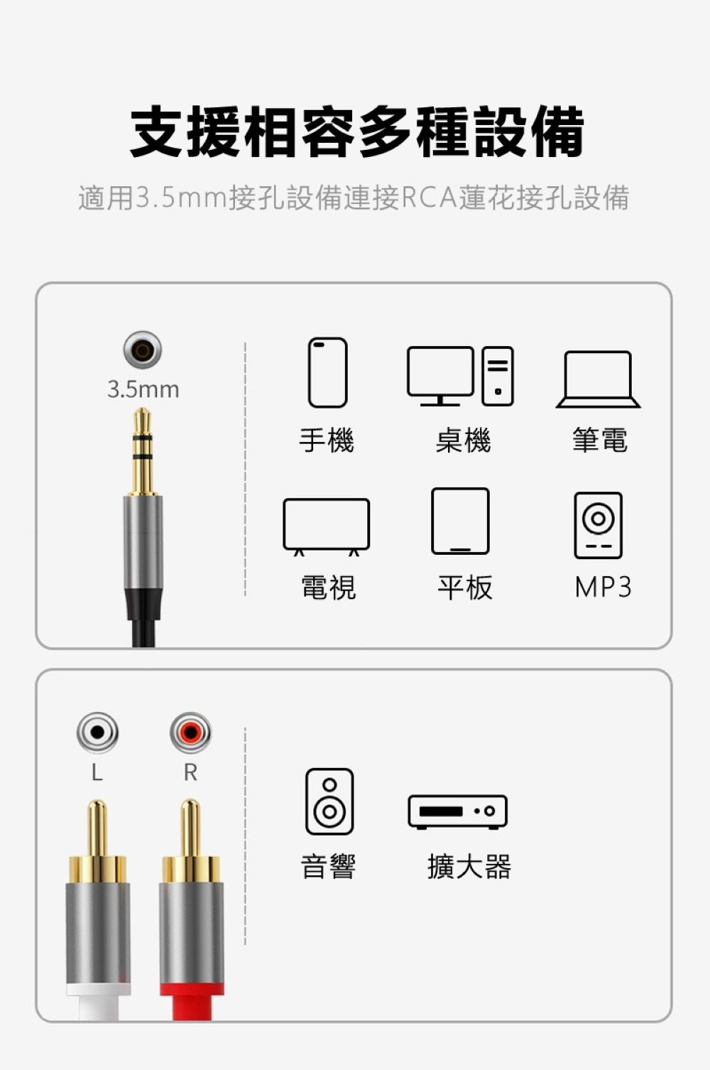 - 適用於多種設備,輕鬆連接3.5mm接孔設備與RCA蓮花接孔設備,享受高品質音樂。
