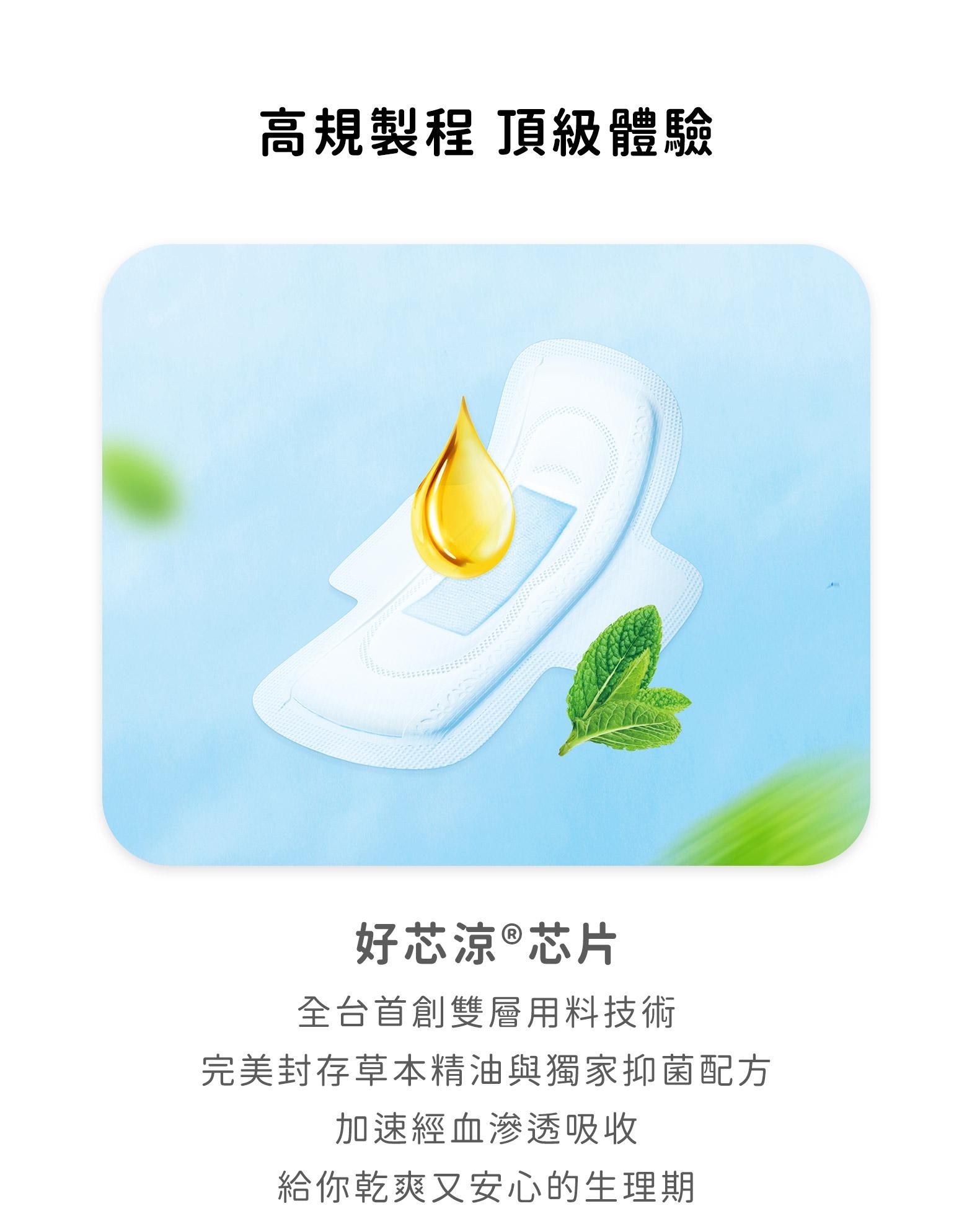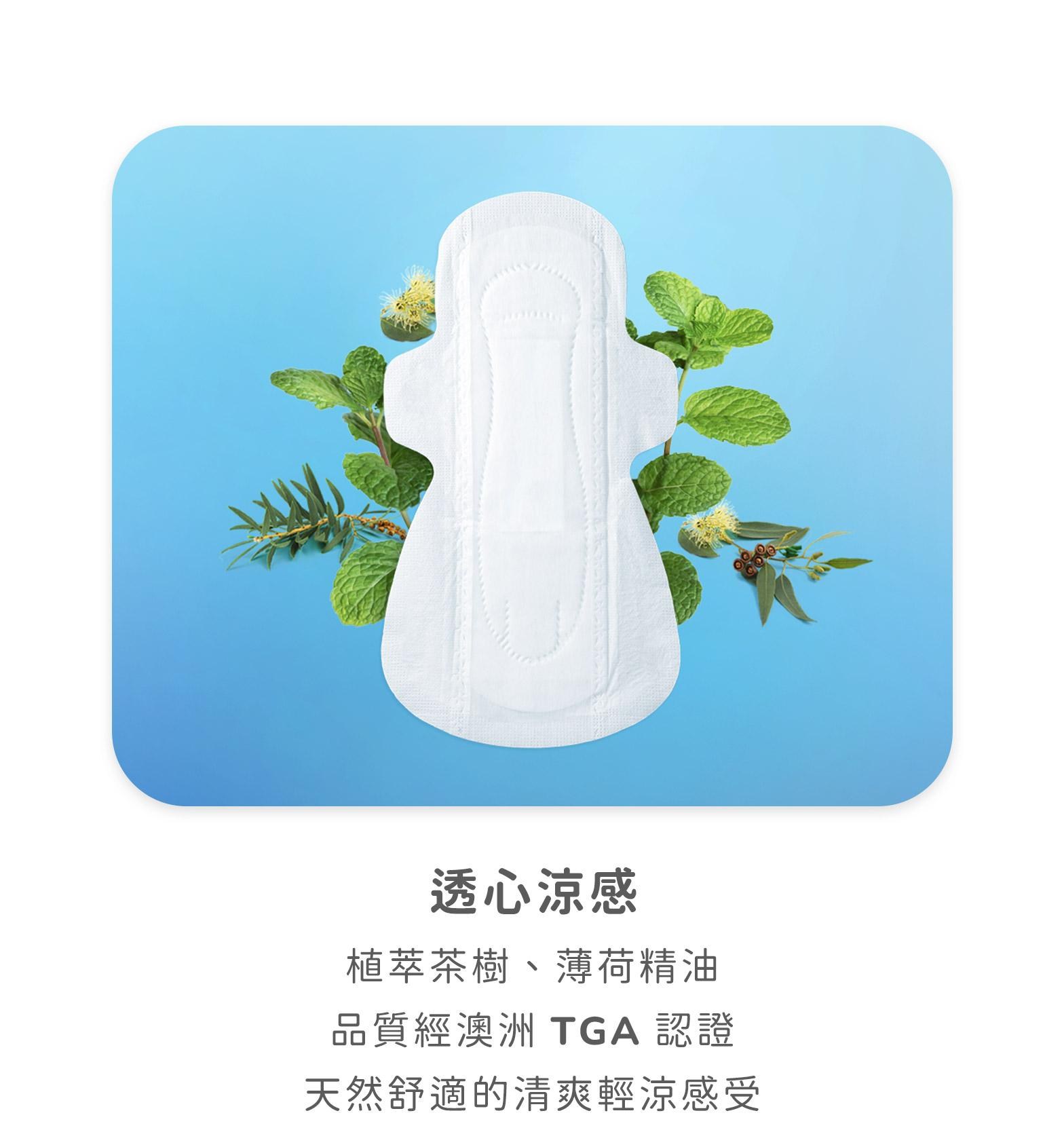 - - 獨特涼感配方,舒緩悶熱不適,讓妳在經期也能感受清新舒爽的體驗。