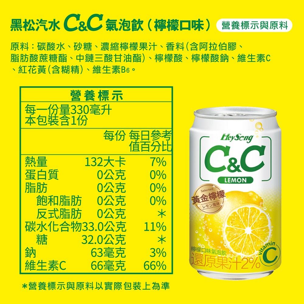 - 黑松C&C檸檬氣泡飲,享受清爽暢快的氣泡口感,瞬間提神醒腦。