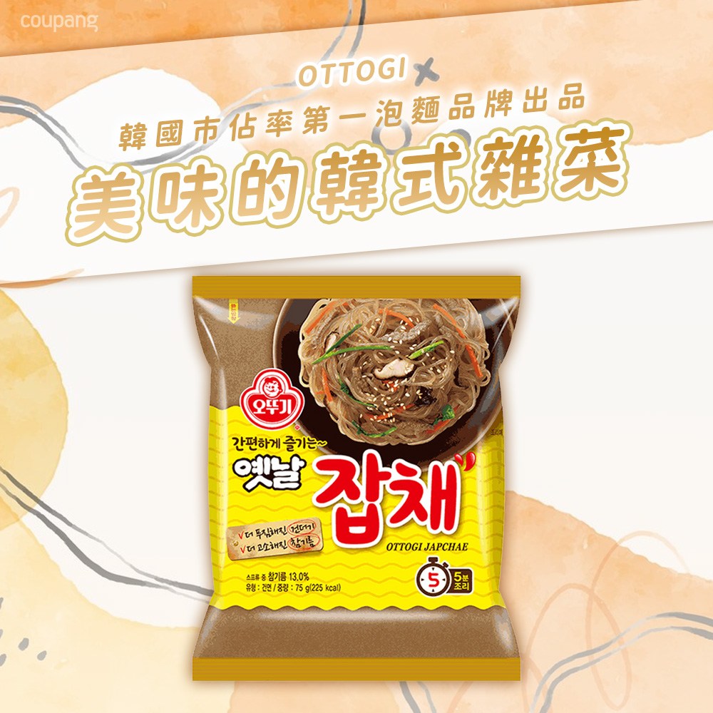 想快速享受美味的韓式料理嗎?Ottogi 不倒翁乾拌冬粉是您的理想選擇!這款方便的袋裝冬粉,每包含有75克的道地韓國風味,讓您在短短5分鐘內即可輕鬆享用。不論是忙碌的上班族、學生,或是想簡單解決一餐的您,都能隨時隨地品嚐到Q彈有勁的冬粉,搭配濃郁的醬汁和豐富的配料,每一口都充滿驚喜。Ottogi 作為韓國知名品牌,其產品經過嚴格的品質把關,讓您吃得安心又美味。現在就來一包Ottogi 不倒翁乾拌冬粉,體驗正宗的韓式風味吧!