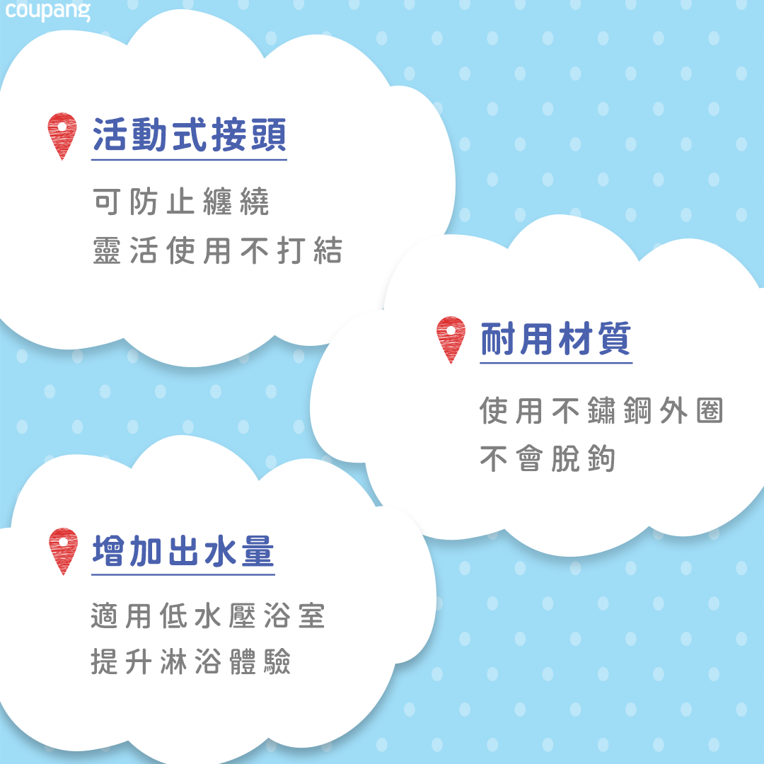 - 享受淋浴時光的必備品,軟管可旋轉設計,讓您輕鬆調整角度,洗澡更加舒適。