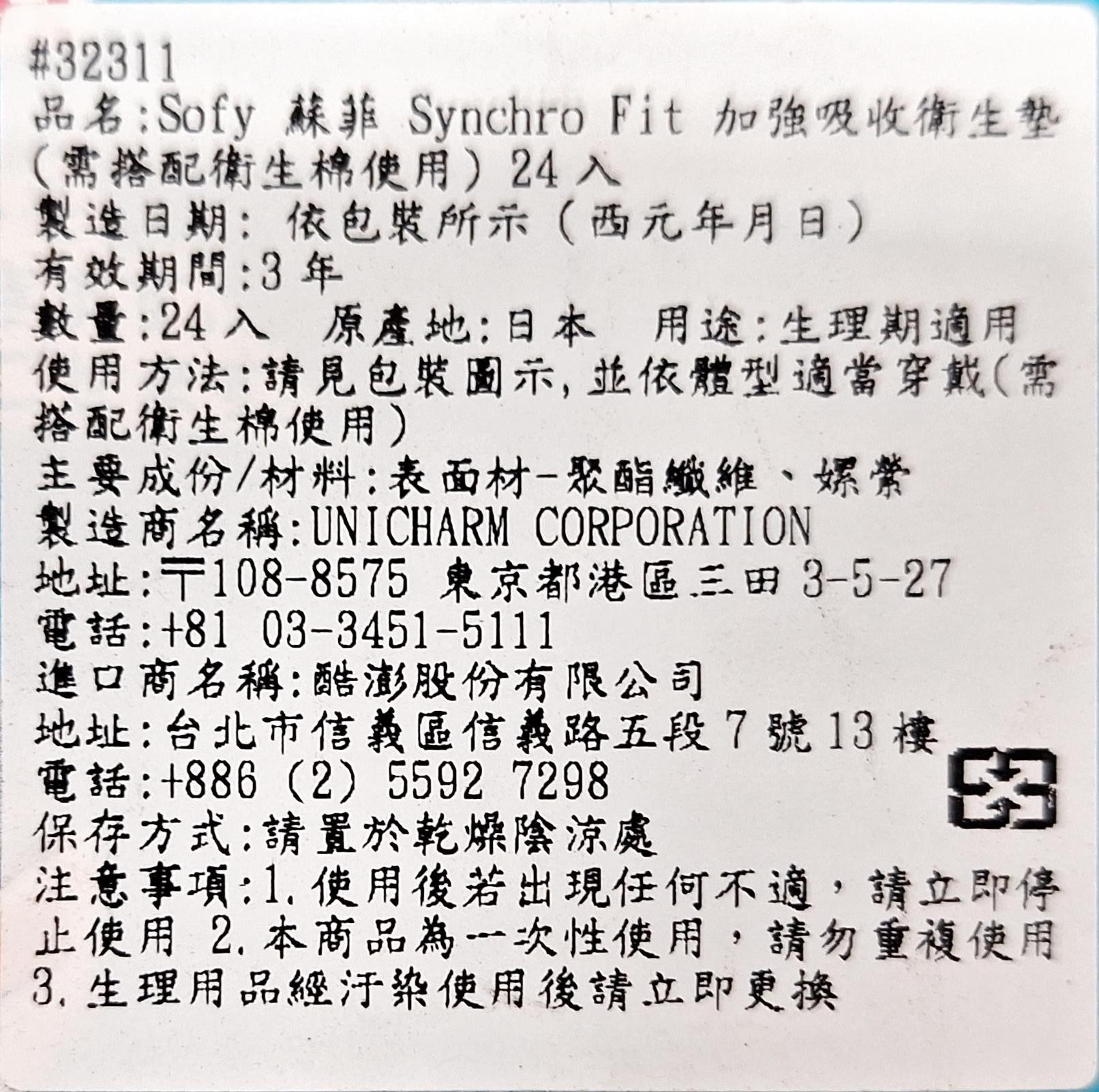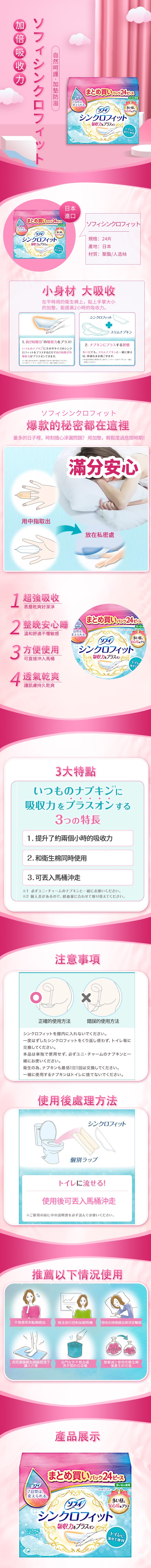 - 蘇菲Synchro Fit衛生墊,獨特設計完美貼合身體曲線,提供極致舒適感。