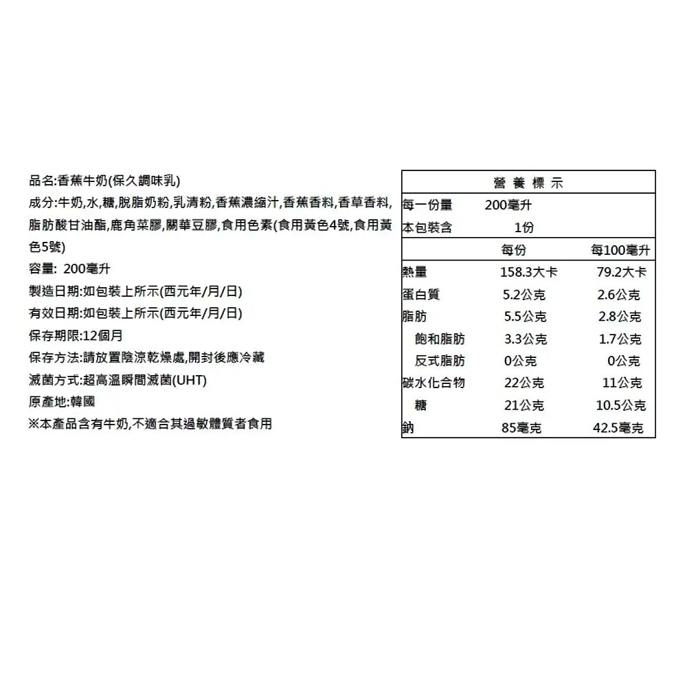 - 韓國原裝進口香蕉牛奶,口感滑順,每一口都充滿濃郁的香蕉風味,令人回味無窮。