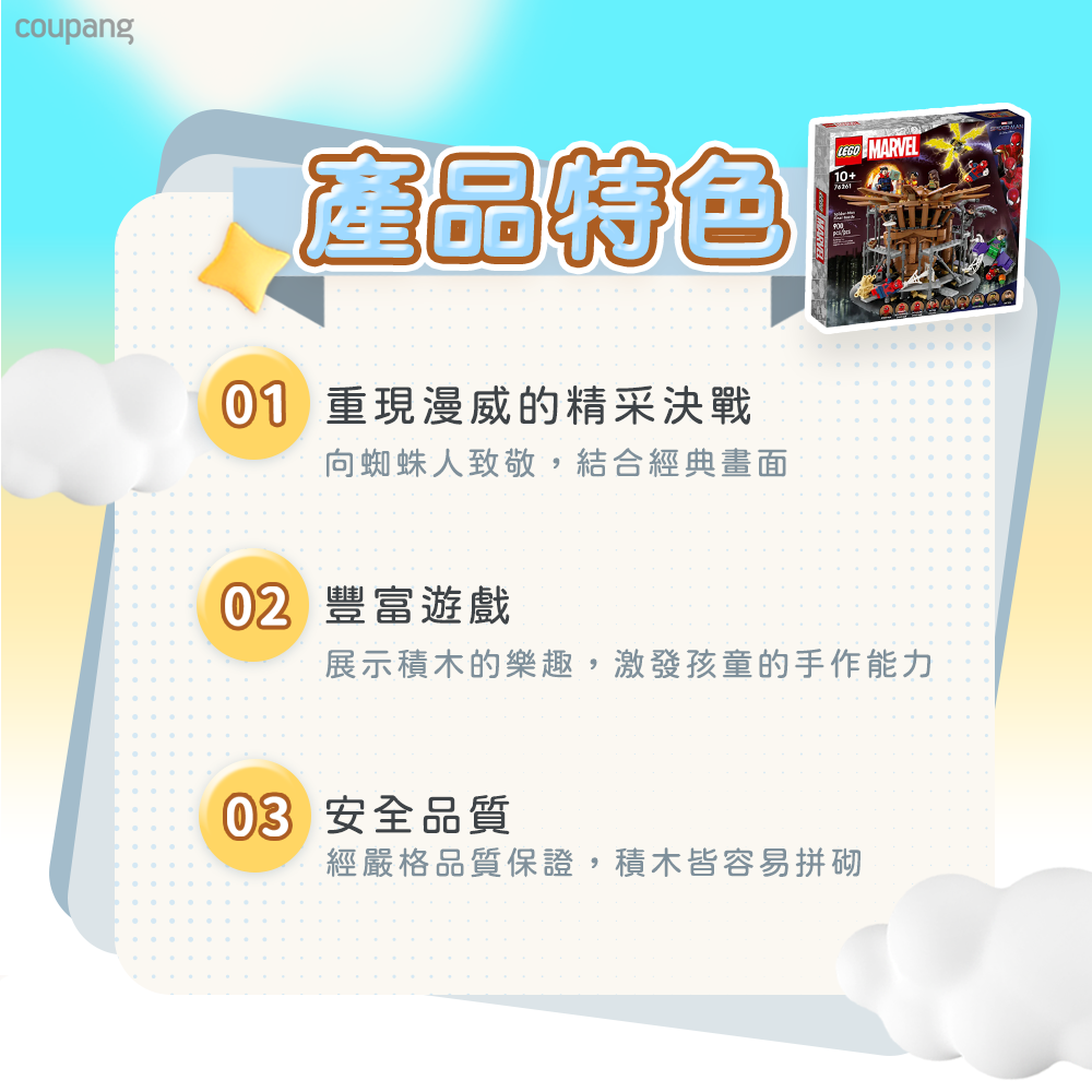 - 包含多個蜘蛛人角色人偶,豐富的細節設計,讓孩子們沉浸在漫威英雄的世界裡。