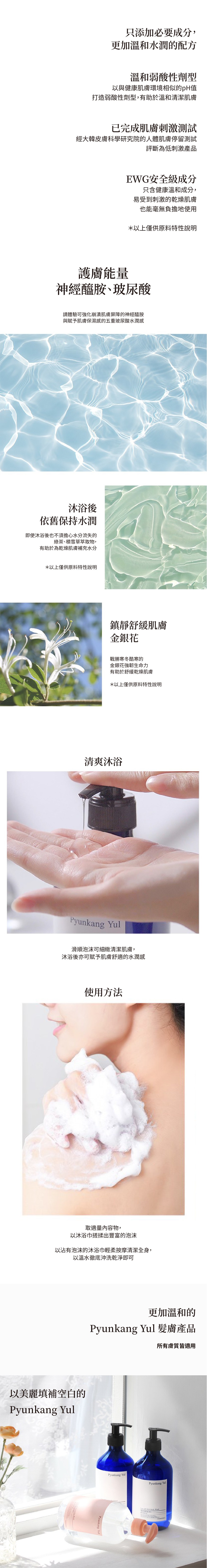 Pyunkang Yul 弱酸性溫和沐浴乳是一款專為敏感肌膚設計的低刺激沐浴露,溫和清潔肌膚,洗後肌膚水潤不緊繃。蘊含多種植物萃取精華,能舒緩肌膚不適,提升肌膚的保濕能力。泡沫細緻綿密,能深入毛孔清潔髒汙,洗淨後肌膚清爽舒適。適合所有膚質使用,讓您在沐浴的同時,也能呵護您的肌膚。