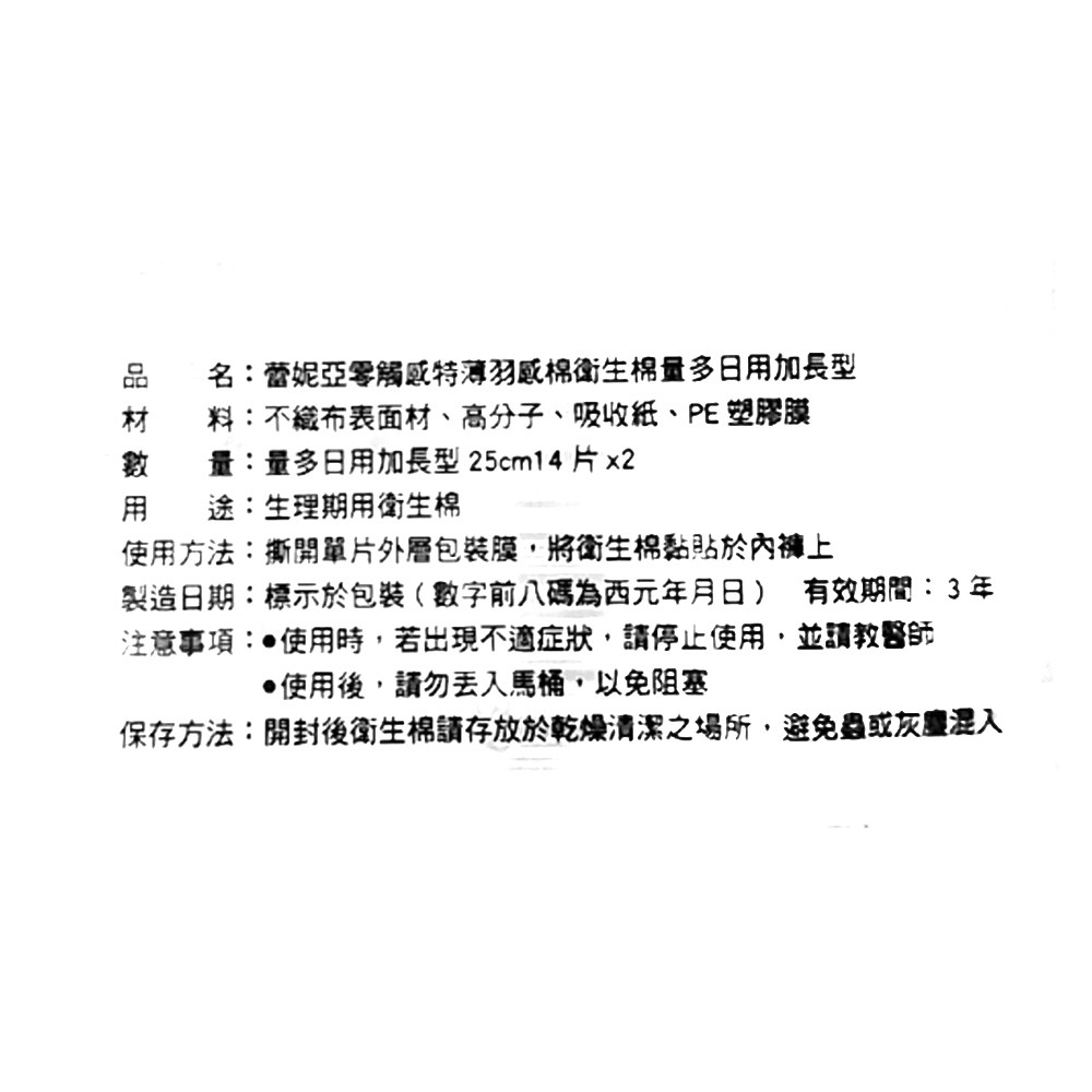 蕾妮亞零觸感特薄羽感棉衛生棉,給您帶來極致輕柔的呵護。這款25公分加長型衛生棉,特別適合量多日子使用,讓您安心無憂。獨家羽感棉材質,觸感輕柔,減少摩擦,給您150%的柔滑體驗。0.1cm特薄設計,超薄透氣,讓您幾乎忘了它的存在。每組包含2包,共28片,超值量販組,給您更省更多。