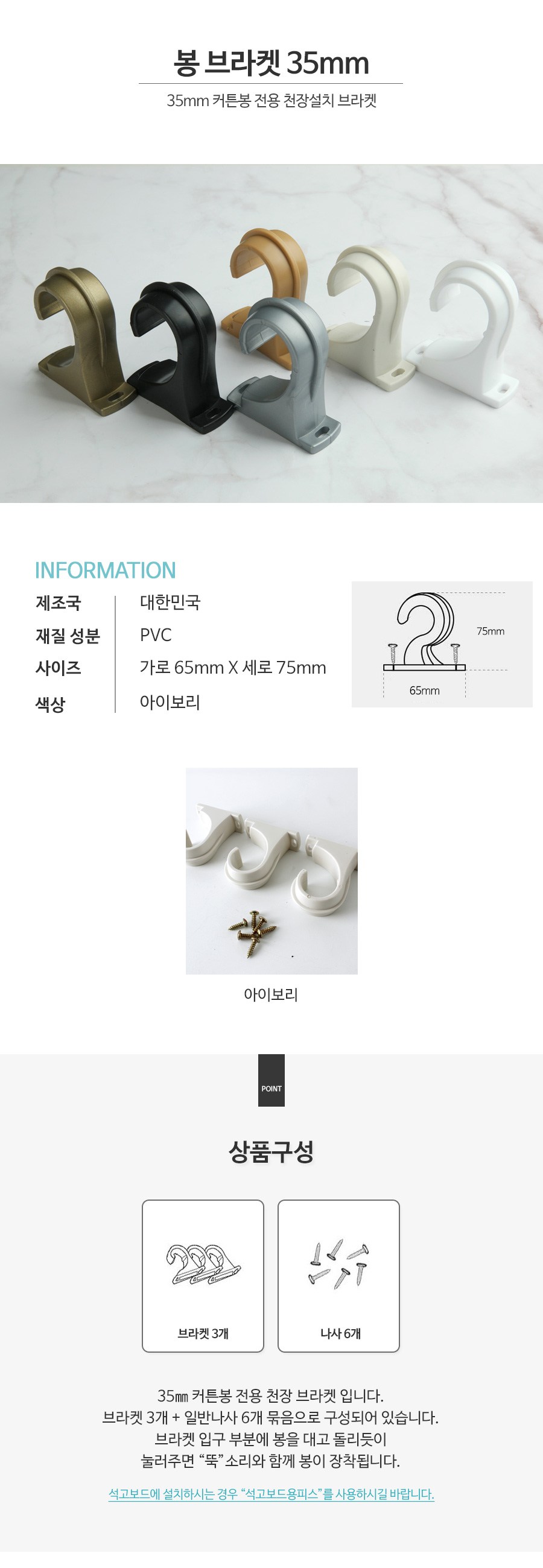 這款35mm象牙白窗簾桿支架是您安裝窗簾的理想選擇。簡約的設計風格,能輕易融入各種居家裝潢,提升整體美感。此組合包含三個支架與六個螺絲,方便您一次購足所需配件。專為35mm窗簾桿設計,安裝簡易且穩固,讓您的窗簾使用更加安全可靠。無論是客廳、臥室或書房,都能輕鬆打造理想的窗簾風格。