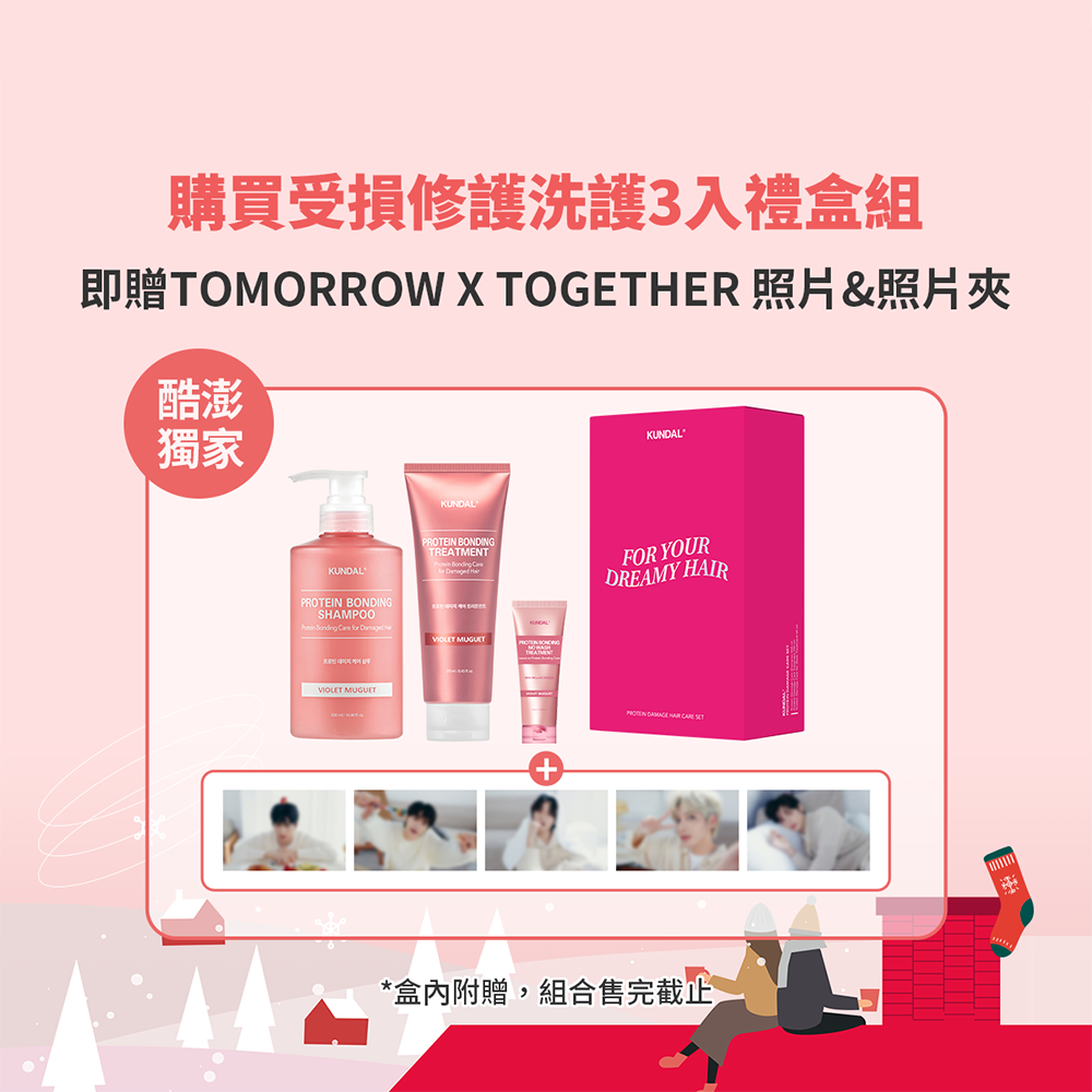 KUNDAL 昆黛爾受損修護洗護3入禮盒組,專為受損髮質設計,內含洗髮乳、護髮乳及免沖洗護髮乳,提供完整的蛋白質修護方案。此禮盒組不僅能深層滋養髮絲,還能有效改善毛躁、分叉等問題,讓秀髮重現健康光澤。獨特的微風鈴蘭香氛,為您帶來愉悅的洗護體驗,彷彿置身於專業沙龍。現在購買,更贈送TOMORROW X TOGETHER形象小卡,讓您一次擁有呵護秀髮與收藏偶像周邊的雙重驚喜!