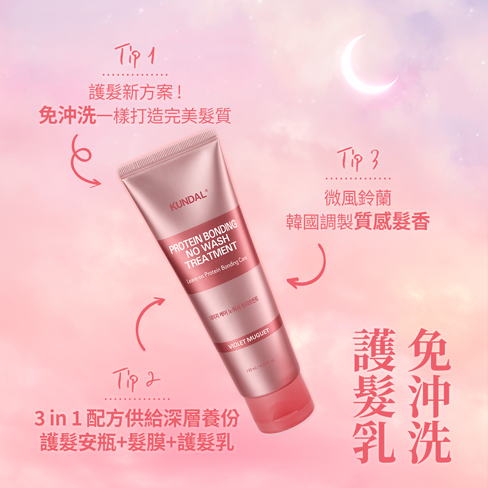 - 免沖洗護髮乳,隨時呵護秀髮,輕盈不黏膩,讓髮絲持久保持水潤光澤。