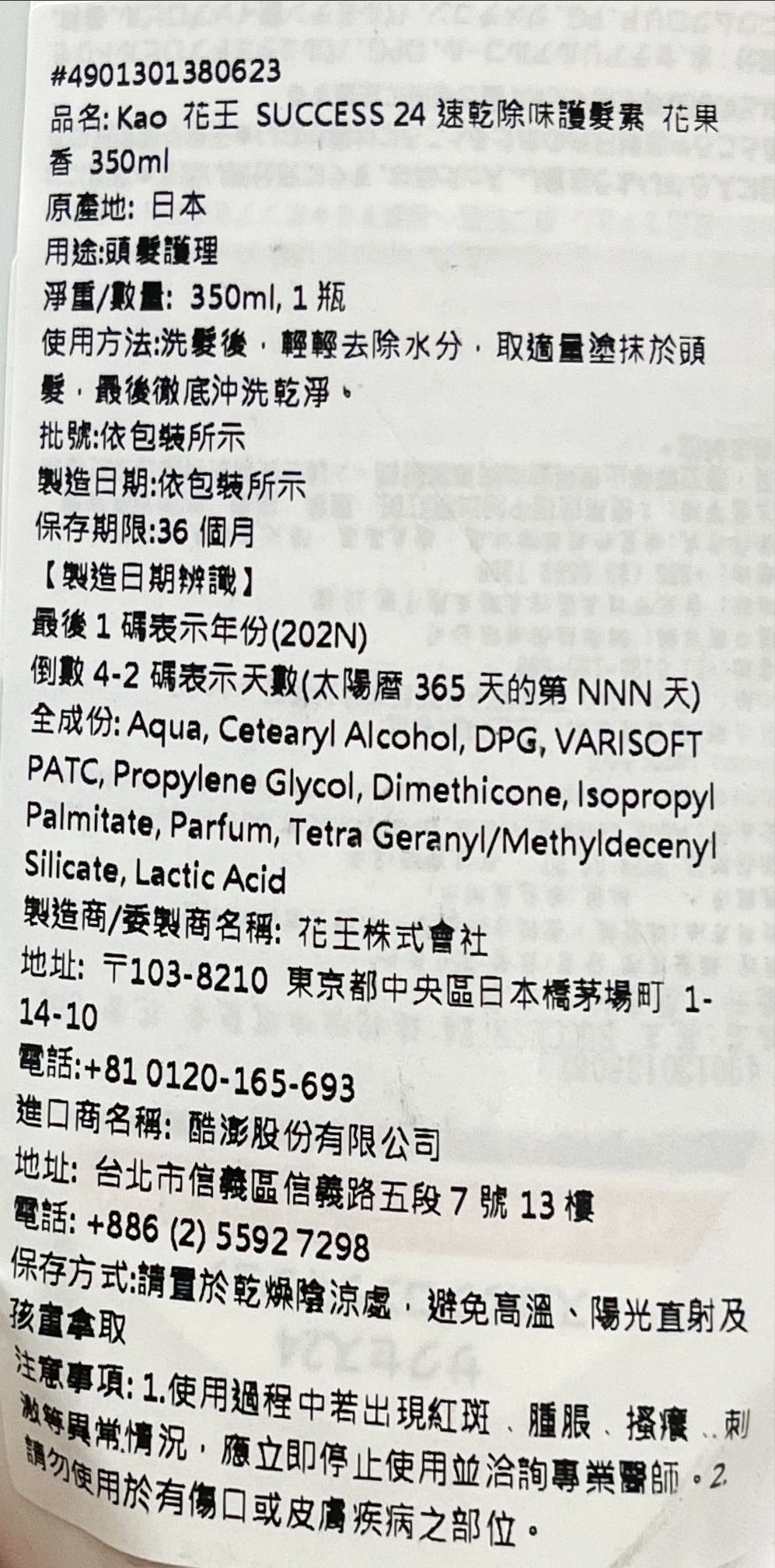 - 花王SUCCESS護髮素,速乾配方讓您告別濕髮困擾,節省寶貴時間。