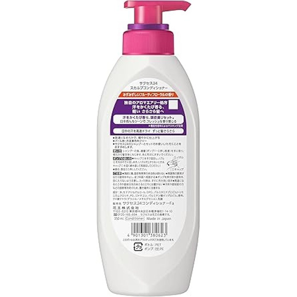 Kao 花王 SUCCESS 24 速乾除味護髮素,讓您告別汗味困擾,時刻保持清爽自信。這款花果香護髮素,專為注重頭皮護理的人士設計,能快速去除頭皮異味,讓秀髮散發怡人香氣。350ml大容量,使用方便,只需在洗髮後輕輕塗抹於髮絲,即可享受24小時的持久清香。SUCCESS 24護髮素,讓您在運動或忙碌一天後,也能擁有輕盈柔順的秀髮,展現自信魅力。