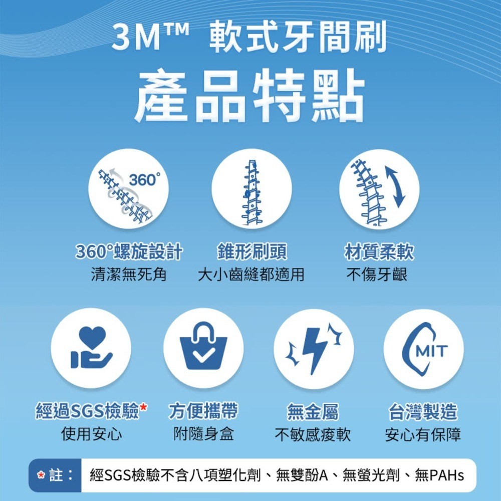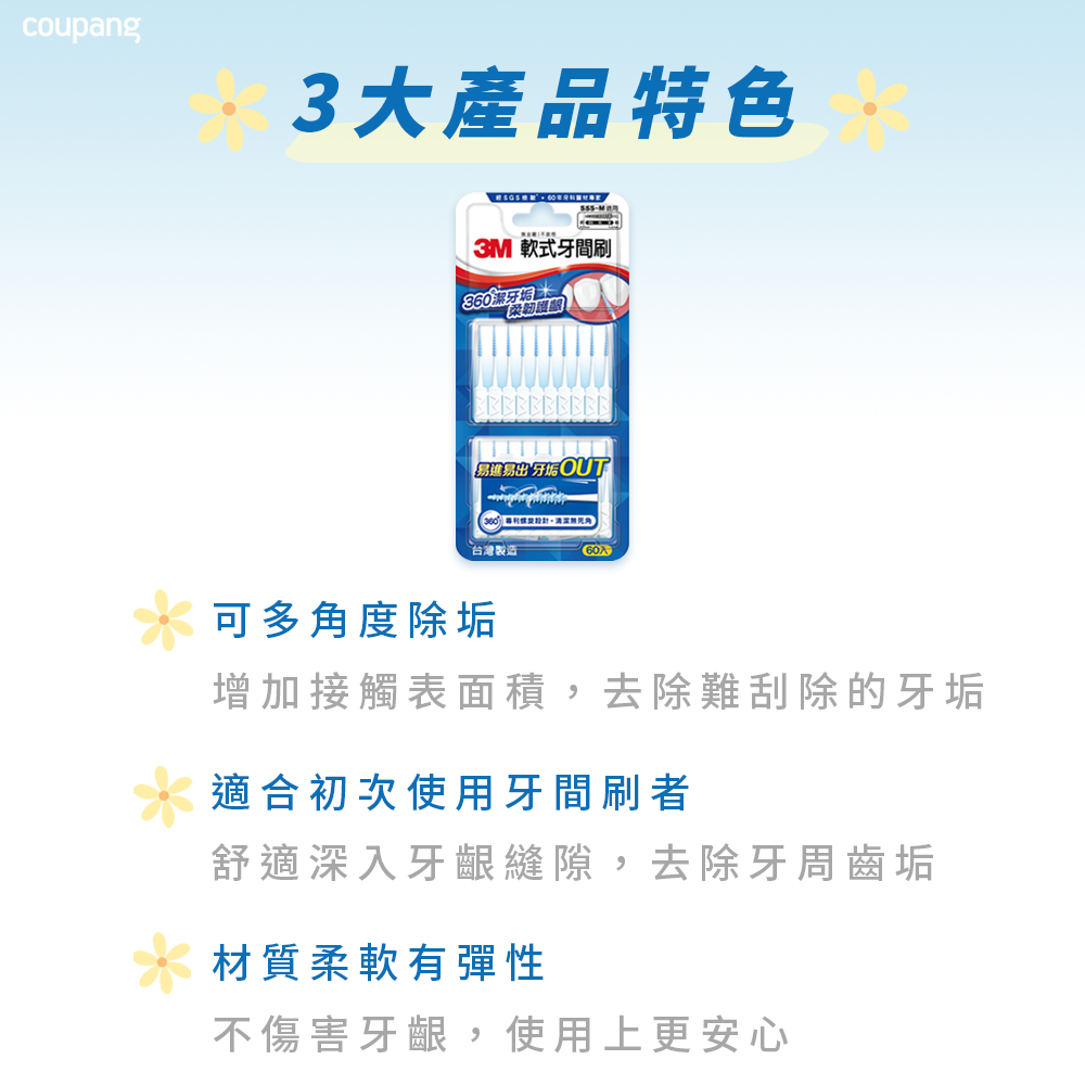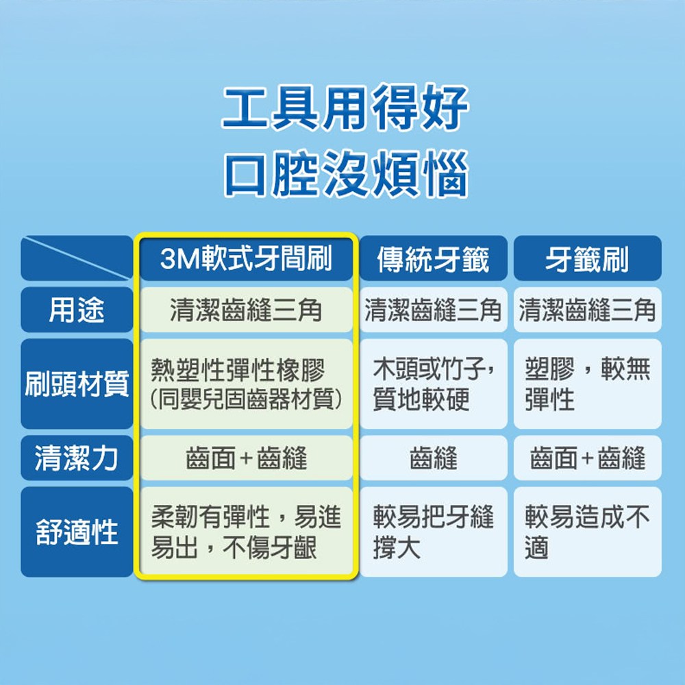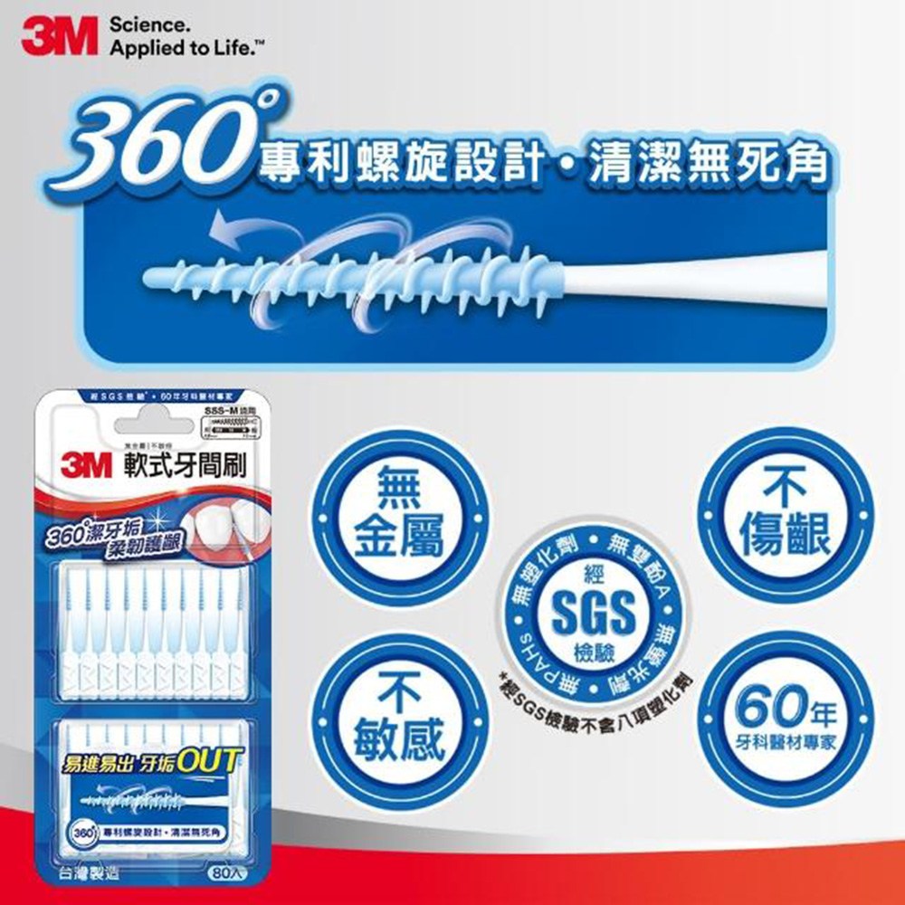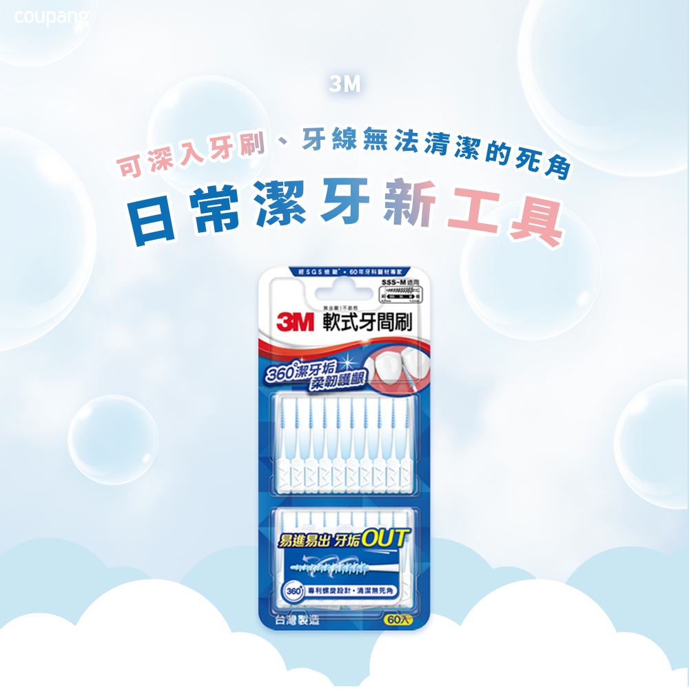 - 3M軟式牙間刷,輕鬆深入牙縫,清潔食物殘渣,保持口腔清新舒暢。