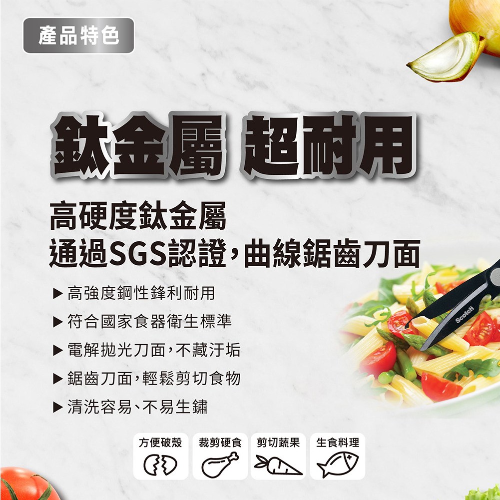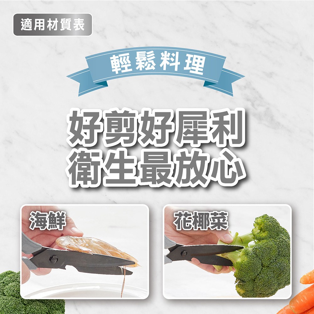 - 鈦金屬刀刃鋒利耐用,輕鬆剪切肉類、蔬菜等食材,料理過程更省力。