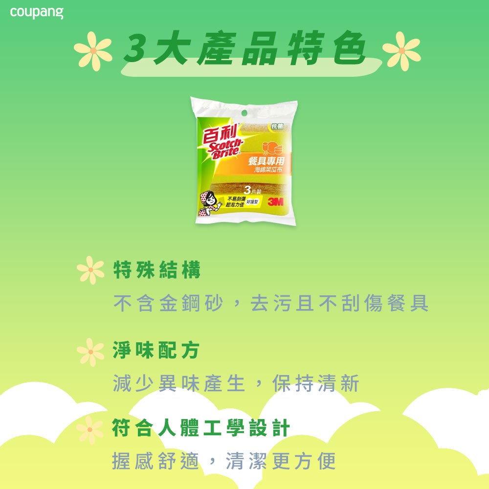 百利餐具專用海綿菜瓜布,輕鬆解決碗盤清潔問題!這款小黃海綿菜瓜布專為餐具設計,採用特殊纖維,有效去除油污,同時呵護餐具表面,不易刮傷。獨特結構使其起泡力佳,少量清潔劑即可產生豐富泡沫,清潔更省力。一包內含3入海綿,經濟實惠,讓您的廚房清潔工作更輕鬆愉快。此外,本產品經抗菌處理,使用更安心,讓您和家人享受潔淨的用餐環境。