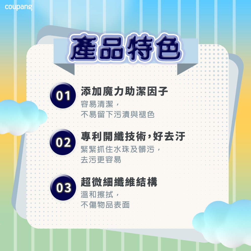 - 超細纖維材質,觸感柔軟細緻,呵護您的家具表面,清潔時不易刮傷,讓居家清潔更加安心。