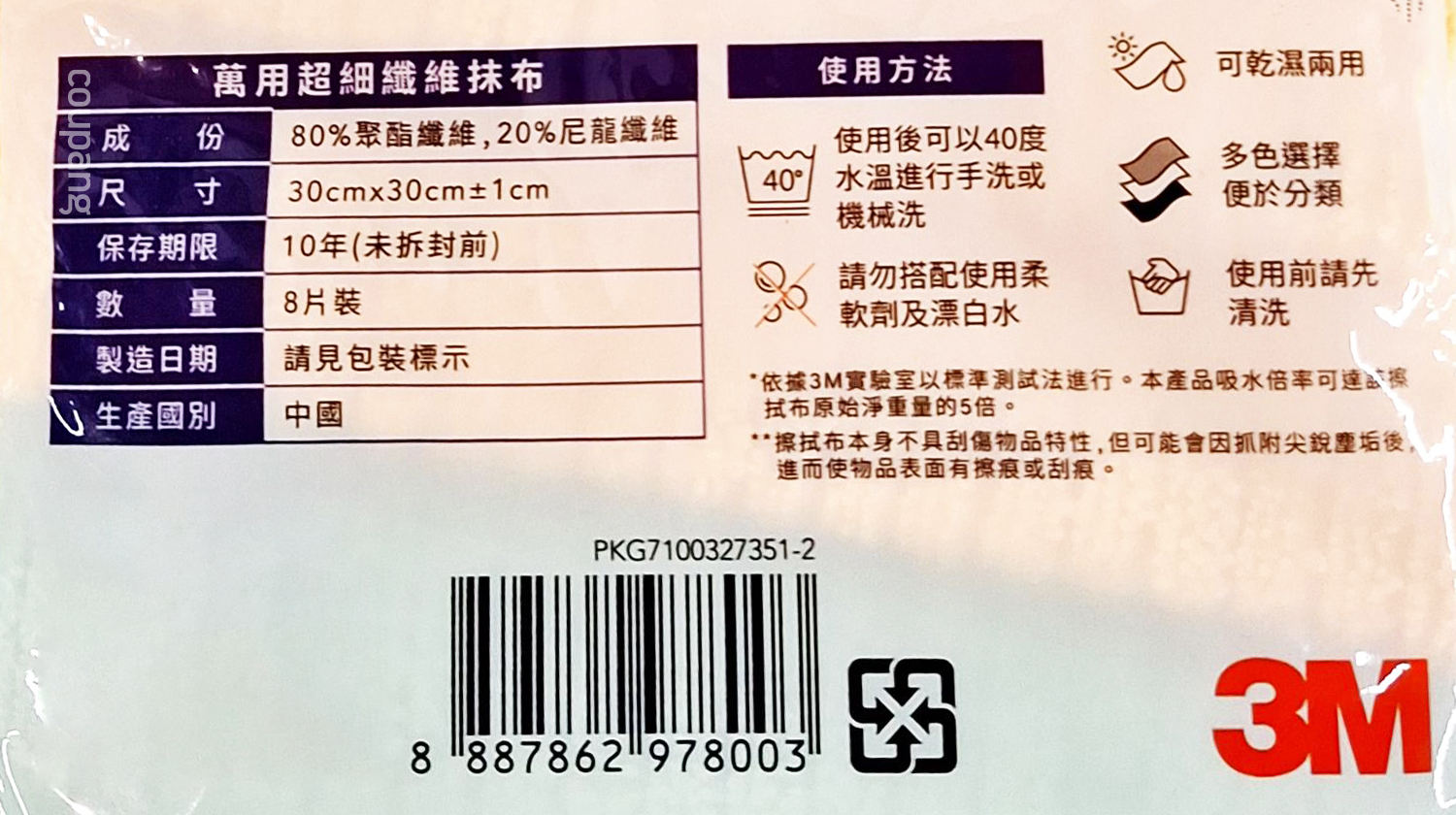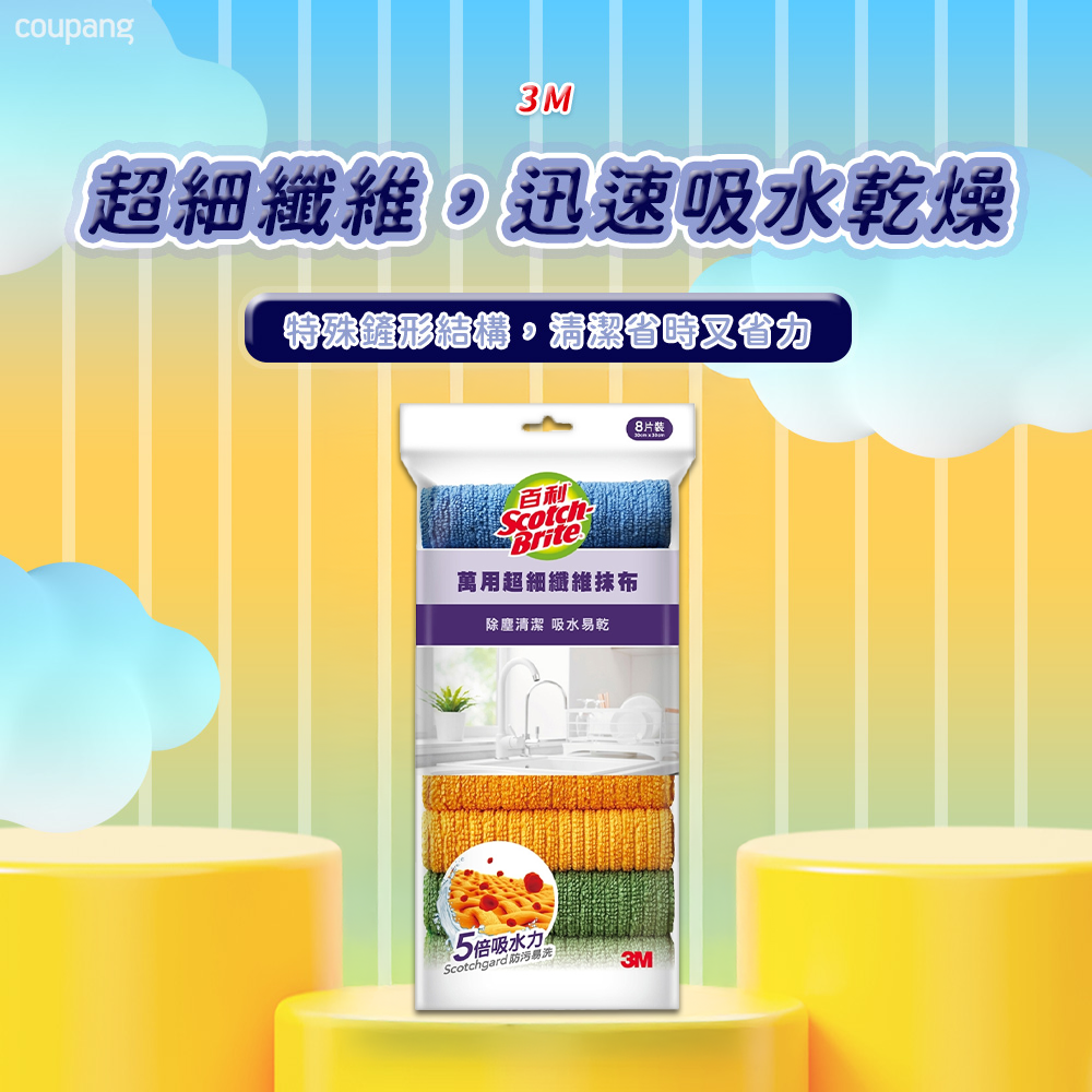 3M 百利萬用超細纖維抹布,是您廚房清潔的最佳幫手。這款抹布採用超細纖維材質,具有超強吸水力,能快速擦乾檯面和餐具,讓廚房保持乾淨整潔。每包包含 8 片 30 x 30 公分的抹布,混色設計方便您區分不同用途,避免交叉污染。此外,抹布添加 Scotchgard 防污因子,不易沾染油污,清洗更輕鬆,讓您省時省力。無論是擦拭油污、清潔檯面,還是擦乾餐具,3M 百利萬用超細纖維抹布都能輕鬆應對,是您廚房清潔不可或缺的好幫手。