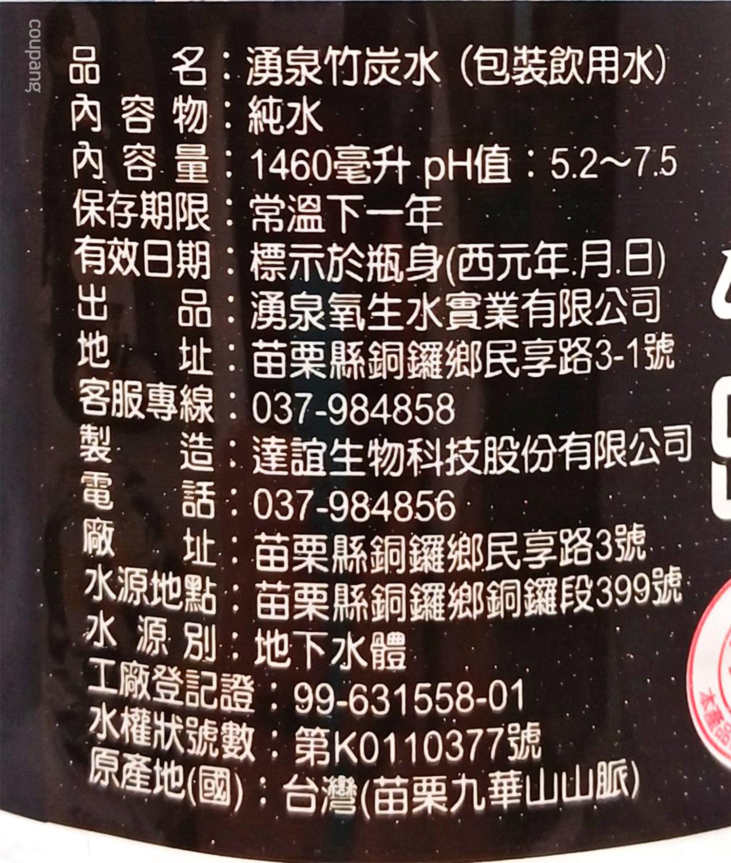 來自九華山的湧泉竹炭水,每一滴都經過嚴格的品質把關,讓您喝得安心又健康。這箱包含12瓶,每瓶容量1460ml,適合家庭或辦公室大量飲用。竹炭水經過竹炭過濾,口感清冽甘甜,有助於補充日常所需的水分,維持身體機能。水源地來自台灣苗栗九華山脈的地下水,並符合CNS12852國家標準,品質有保障。選擇湧泉竹炭水,享受來自大自然的純淨好水。