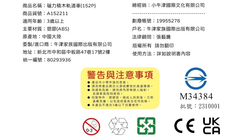 小牛津磁力積木軌道車,一套152片的益智玩具,能激發孩子們的無限創意與想像力。這款積木結合了磁力與軌道設計,讓孩子們可以輕鬆搭建出各種造型獨特的軌道,並讓小汽車在軌道上奔馳,體驗速度與激情。積木採用ABS塑膠材質,讓家長們可以放心讓孩子們玩耍。適合3歲以上的兒童,不僅能培養孩子們的動手能力,還能促進他們的空間思維和邏輯能力發展。快來和小牛津磁力積木軌道車一起探索積木世界的樂趣吧!