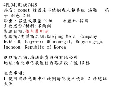 - 韓國製造不銹鋼餐具,讓您享受道地韓式風味,用餐體驗更上一層樓。