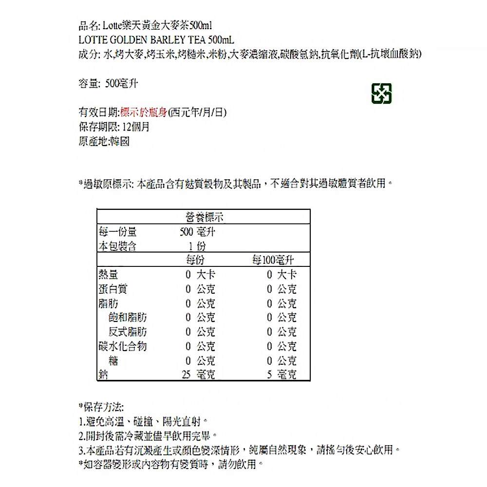 - 樂天黃金大麥茶,口感清爽解渴,隨時享受無負擔的健康美味。