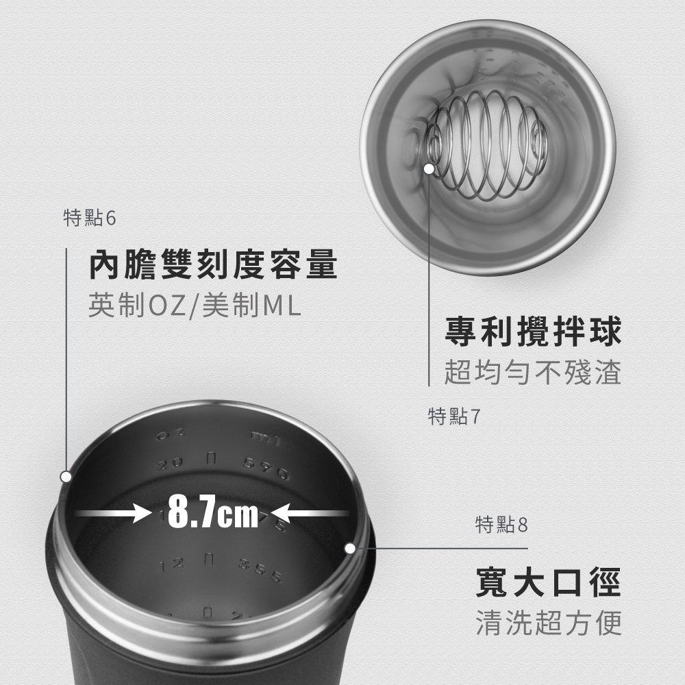 - 享受均勻飲品,專利攪拌球設計,輕鬆混合蛋白粉,告別結塊煩惱,口感更升級。