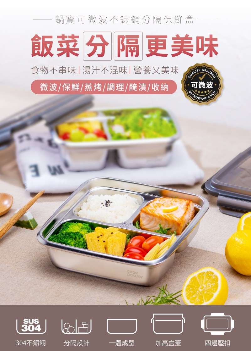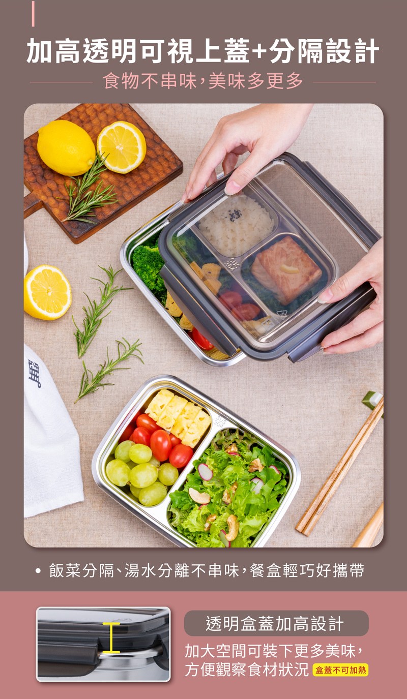 - 鍋寶三格保鮮盒,分隔設計讓食材味道不混雜,保持食物原味。